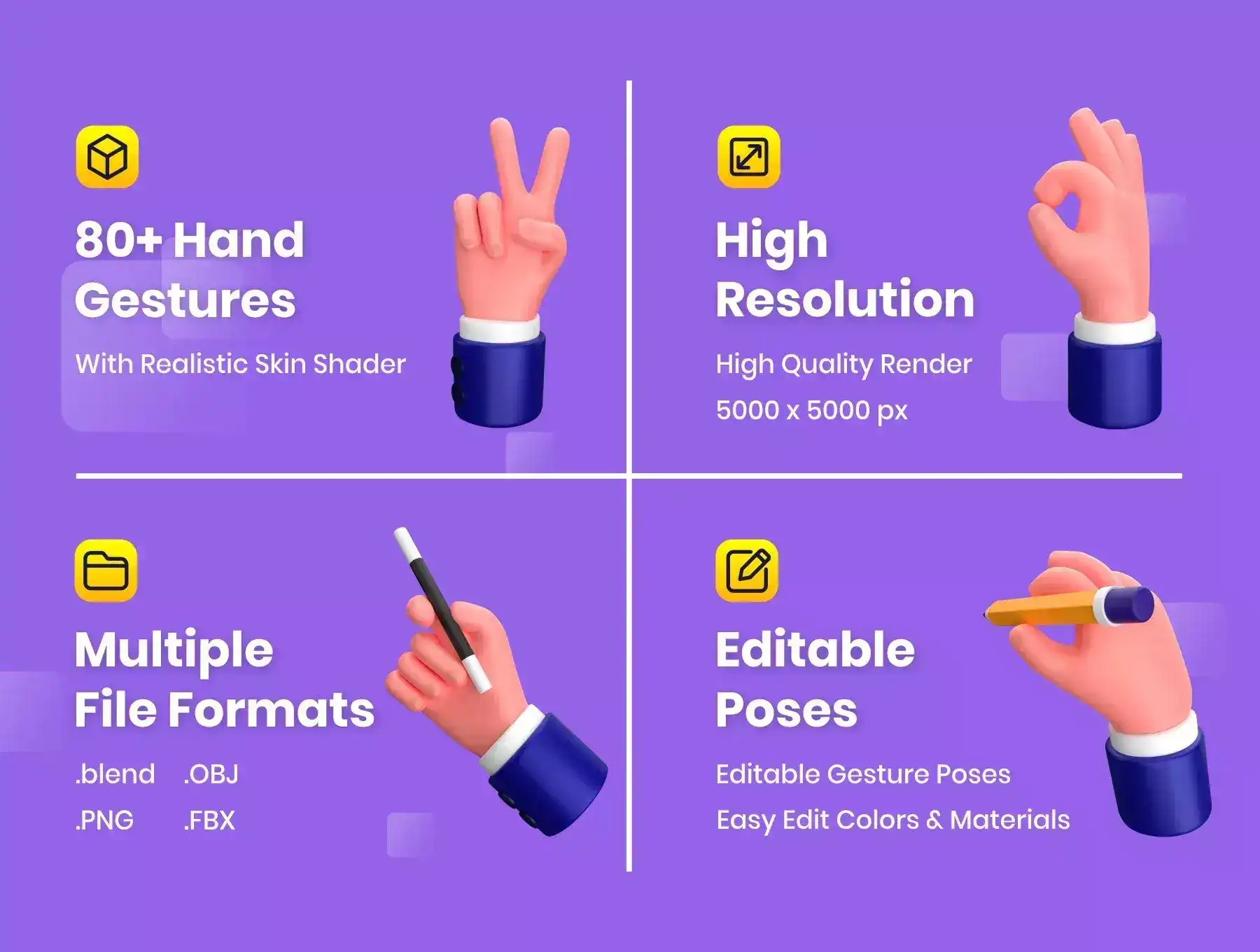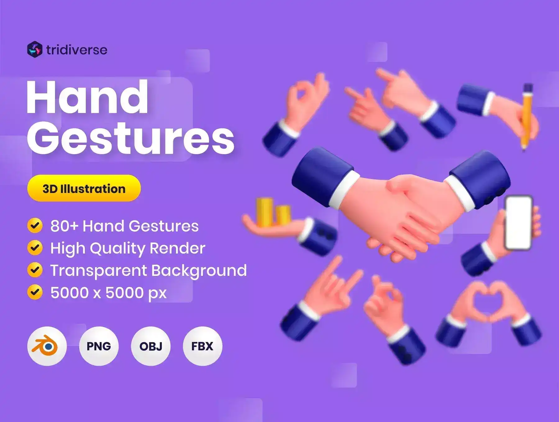 Hand Gestures - 3D Illustration can be used for your project design needs such Animation, Web Design, UI Design, Presentation Slides, Banner, Posters, and Others.