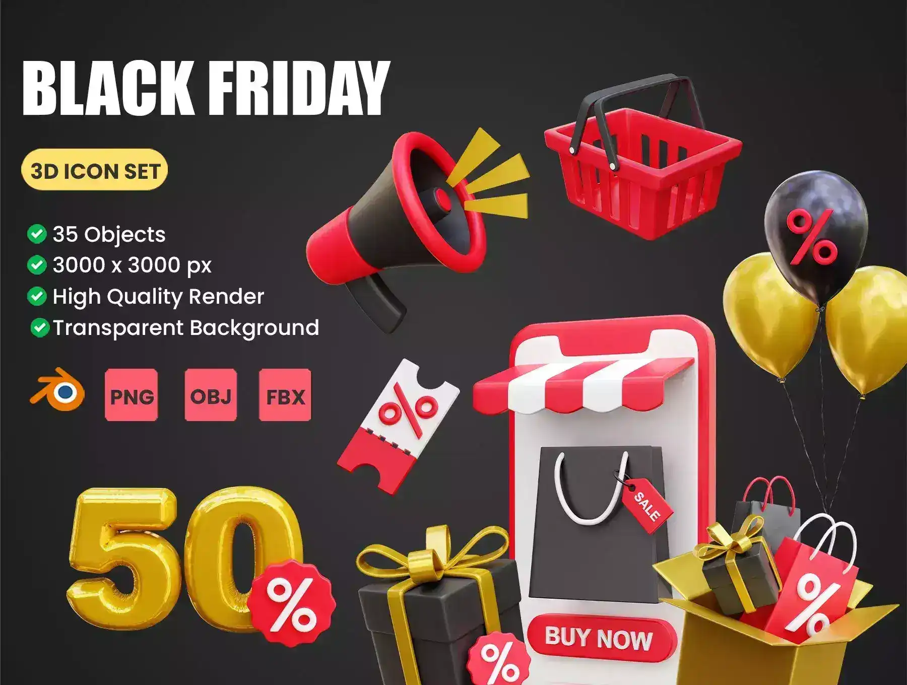 We bring to you 35 customizable icons in Blender scenes, including PNG, OBJ & FBX.