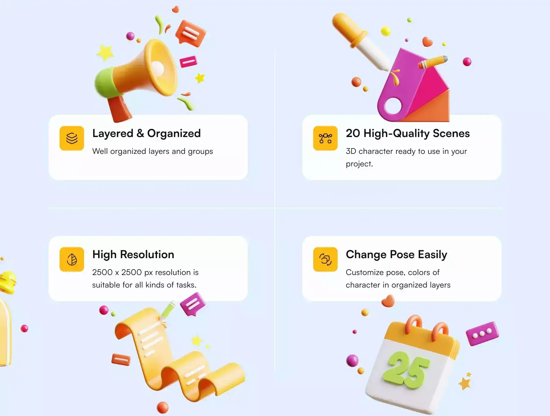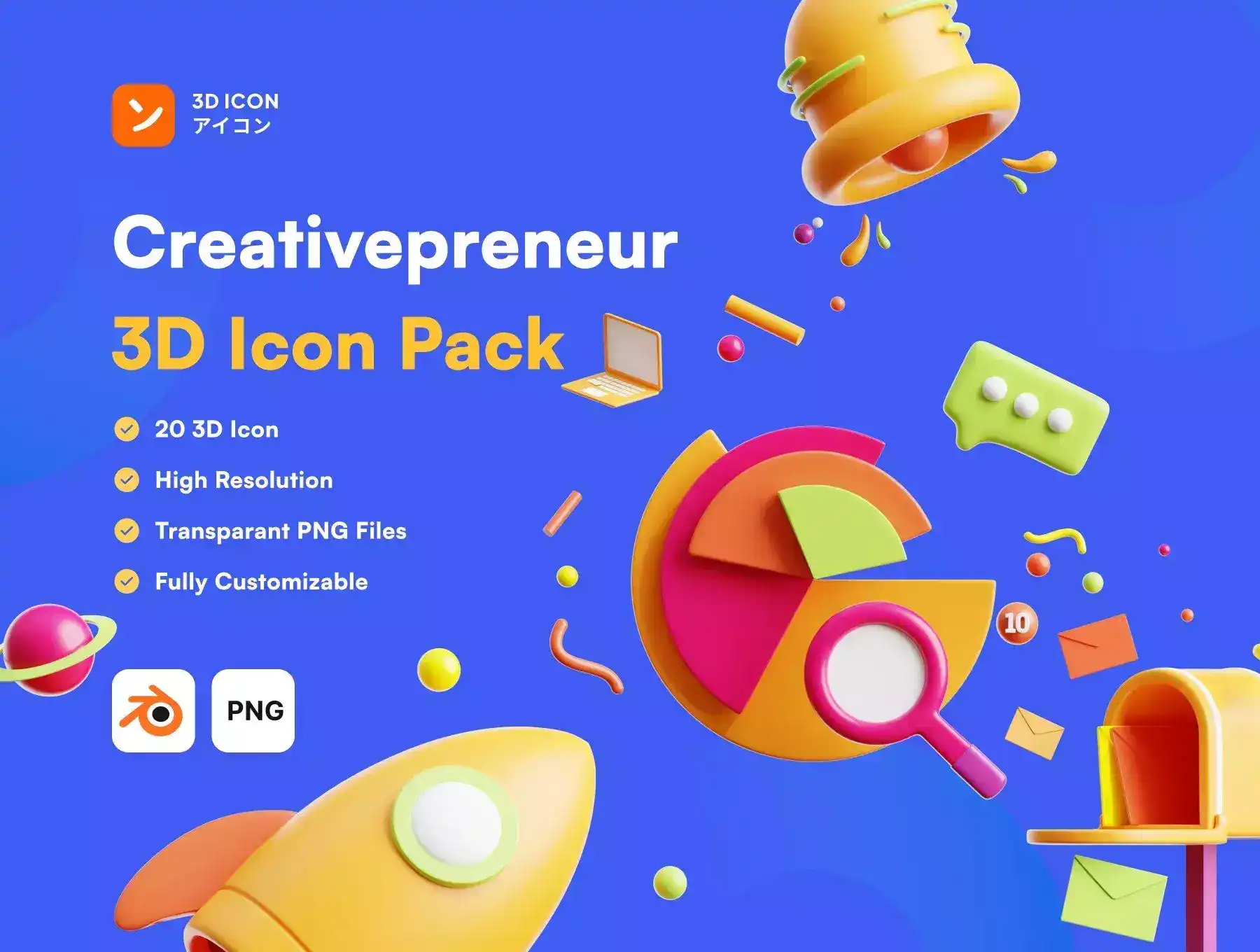 Creativepreneur 3D Icon Pack - can be used for design needs, animation, web design, UI design, presentation slides, posters, and others.