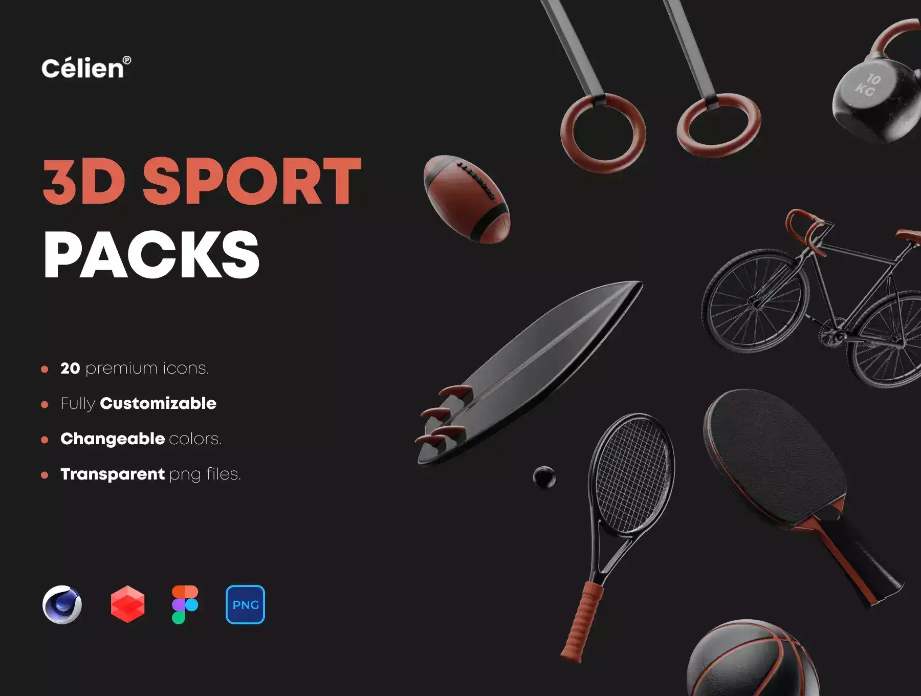 Sports Illustration Packs - 20 unique illustrations for web and mobile that will help you create great designs. All illustrations are 100% customizable dans C4D.