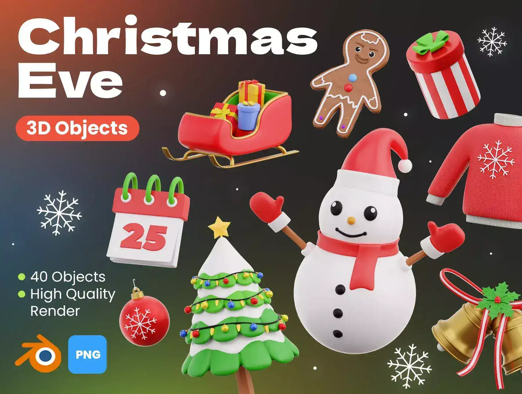 Christmas Eve 3D Icons can be used for design needs, animation, web design, UI design, presentation slides, posters, and others.Perfect for completing your Design.✨