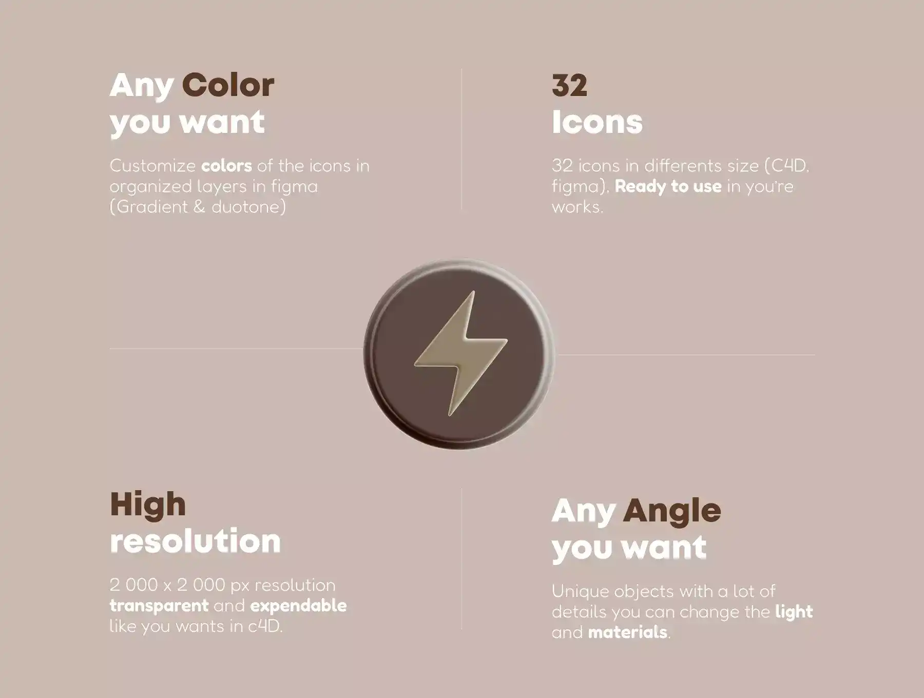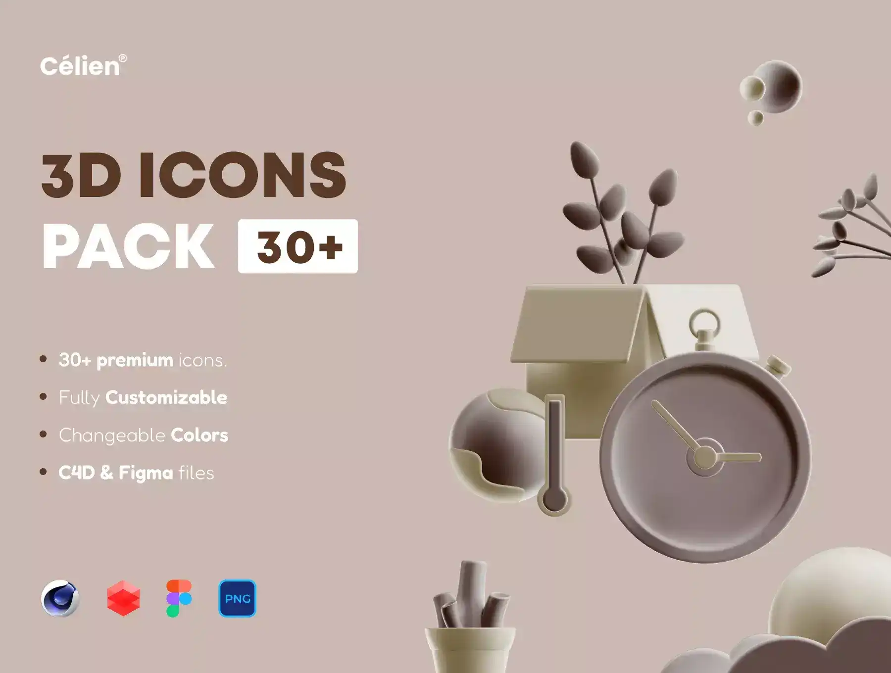 The pack includes 30 easily customizable volumetric icons and Cinema 4D scenes.