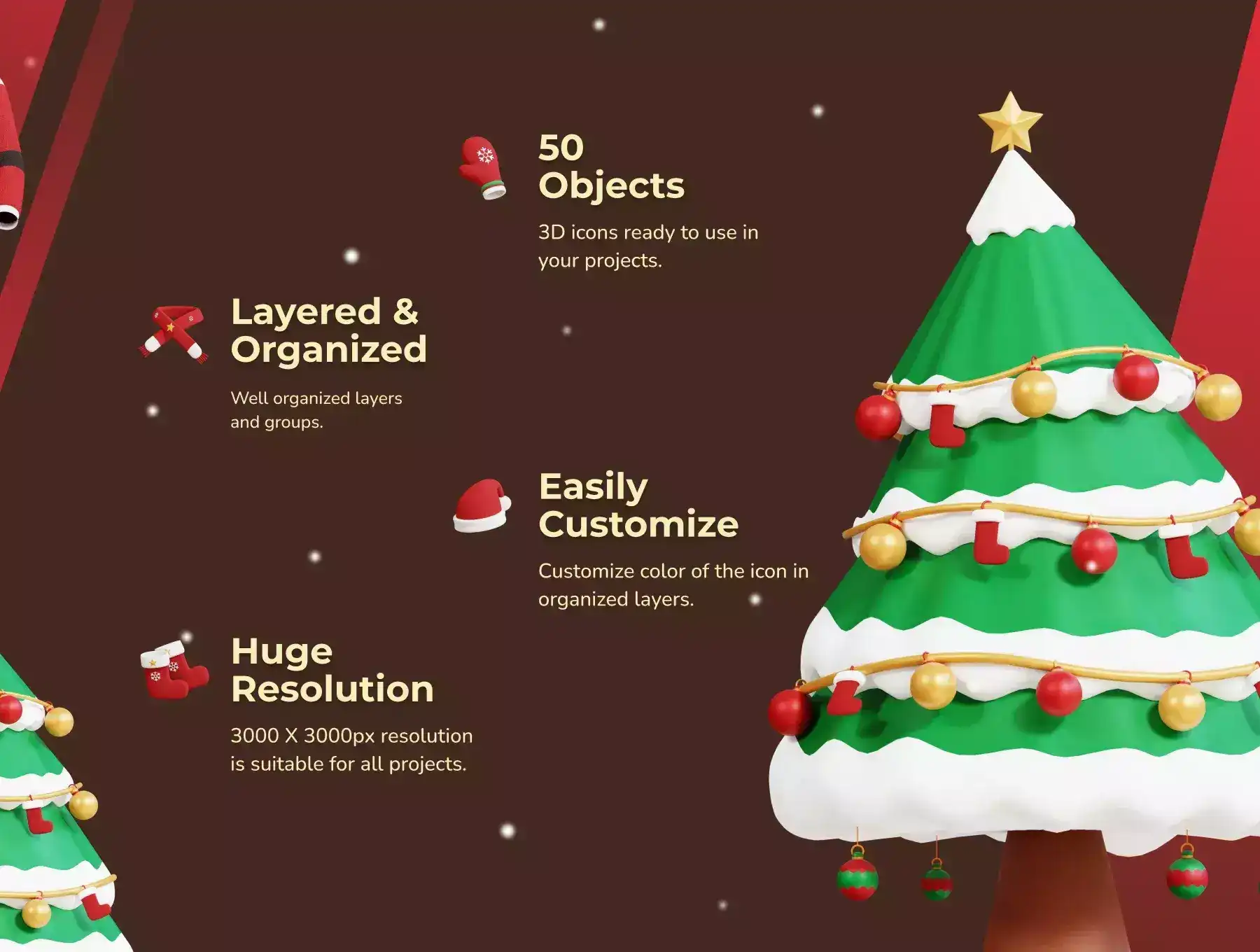 Christmas 3D Icon Pack is a pack of Exclusive icon that can be used for design needs, animation, web design, UI design, presentation slides, posters, and others.