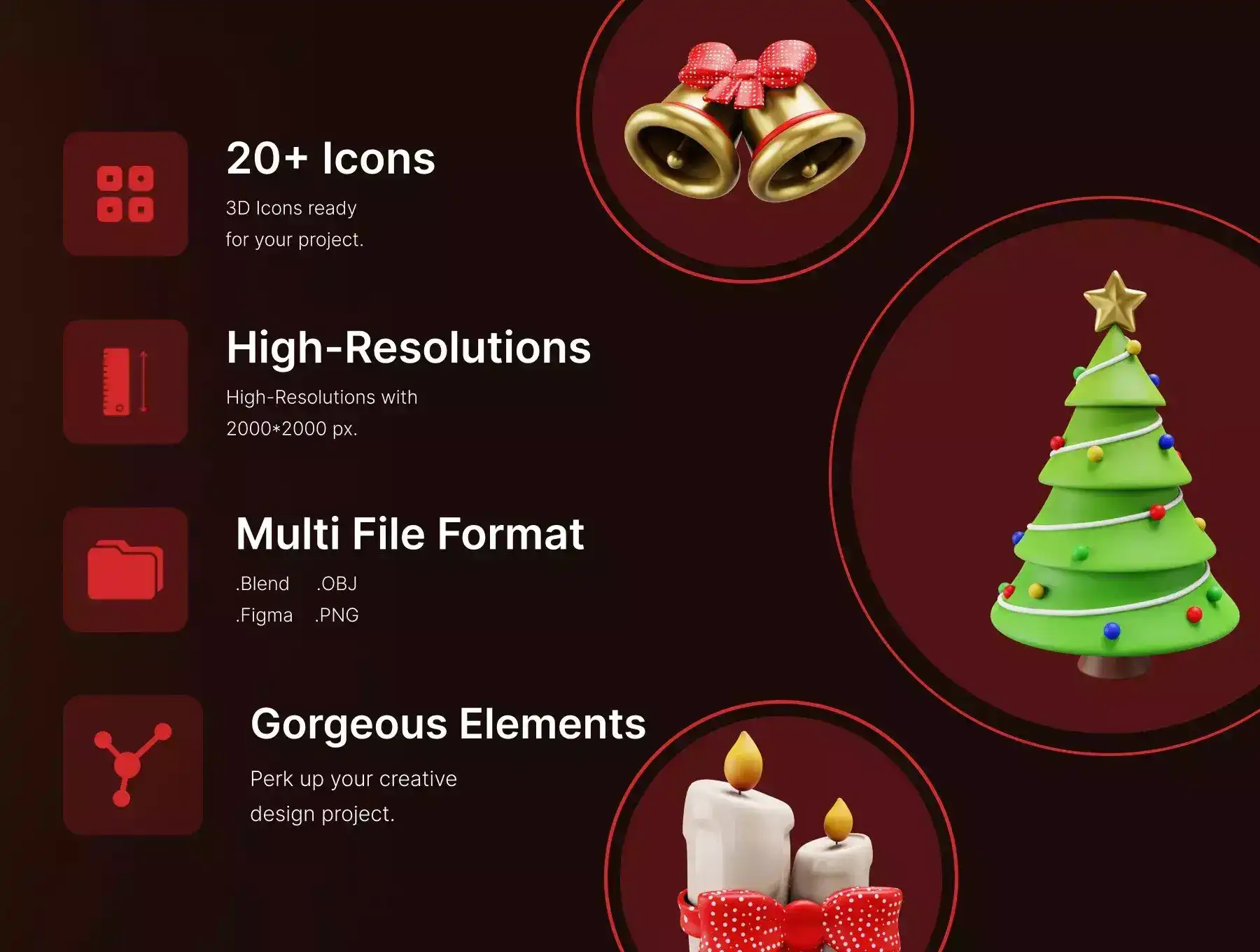 The realistic textures and vibrant colors bring the Christmas spirit alive on your page. Plus, with no coding required and drag-and-drop integration, you can have these fantastic Santa claus 3D