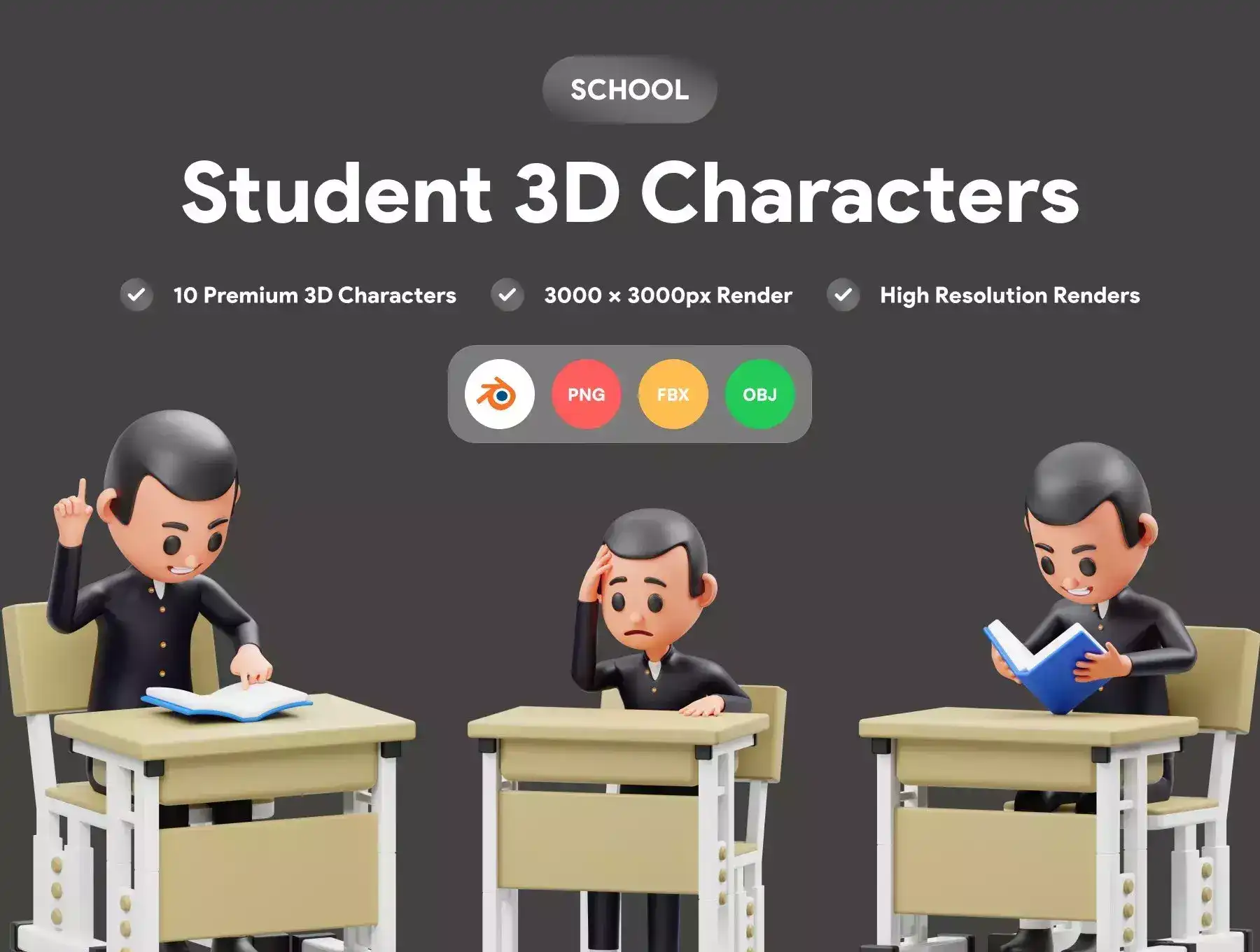 **Student Character 3D Illustration**\\