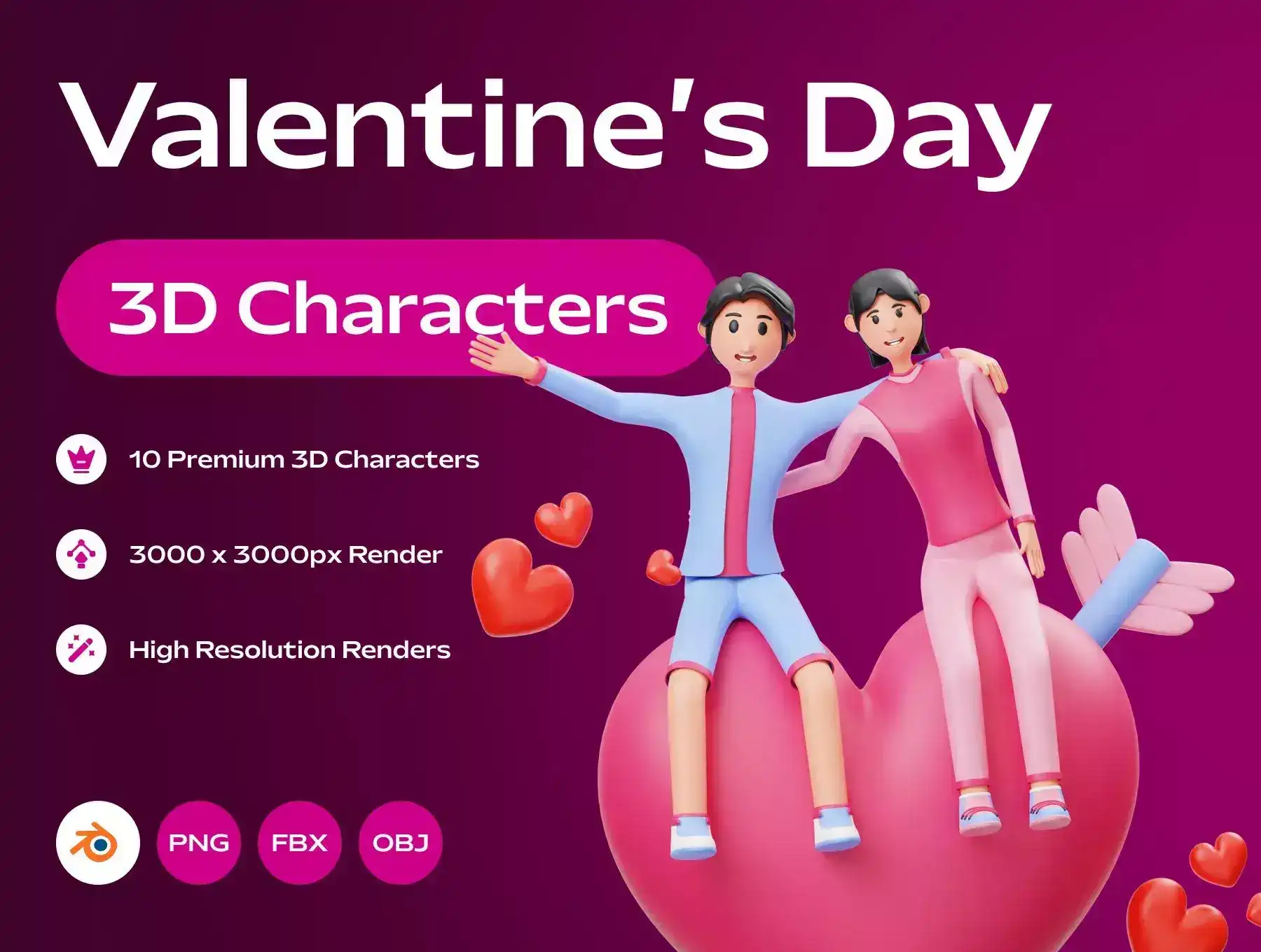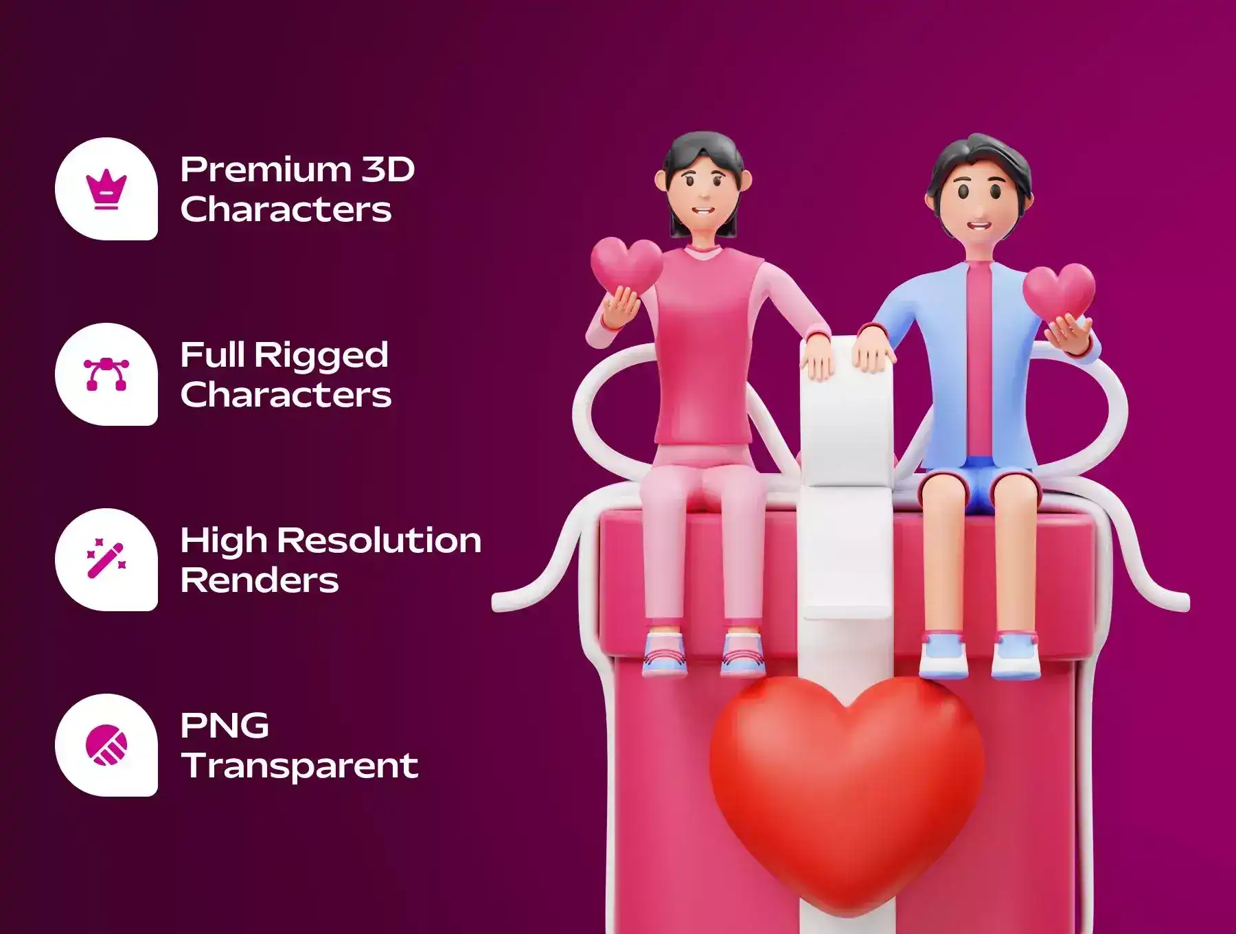 10 ready-made Valentine’s Couple 3D Illustration file objects for Websites, Mobile Apps, and more. Enhance your designs with 3D Assets.