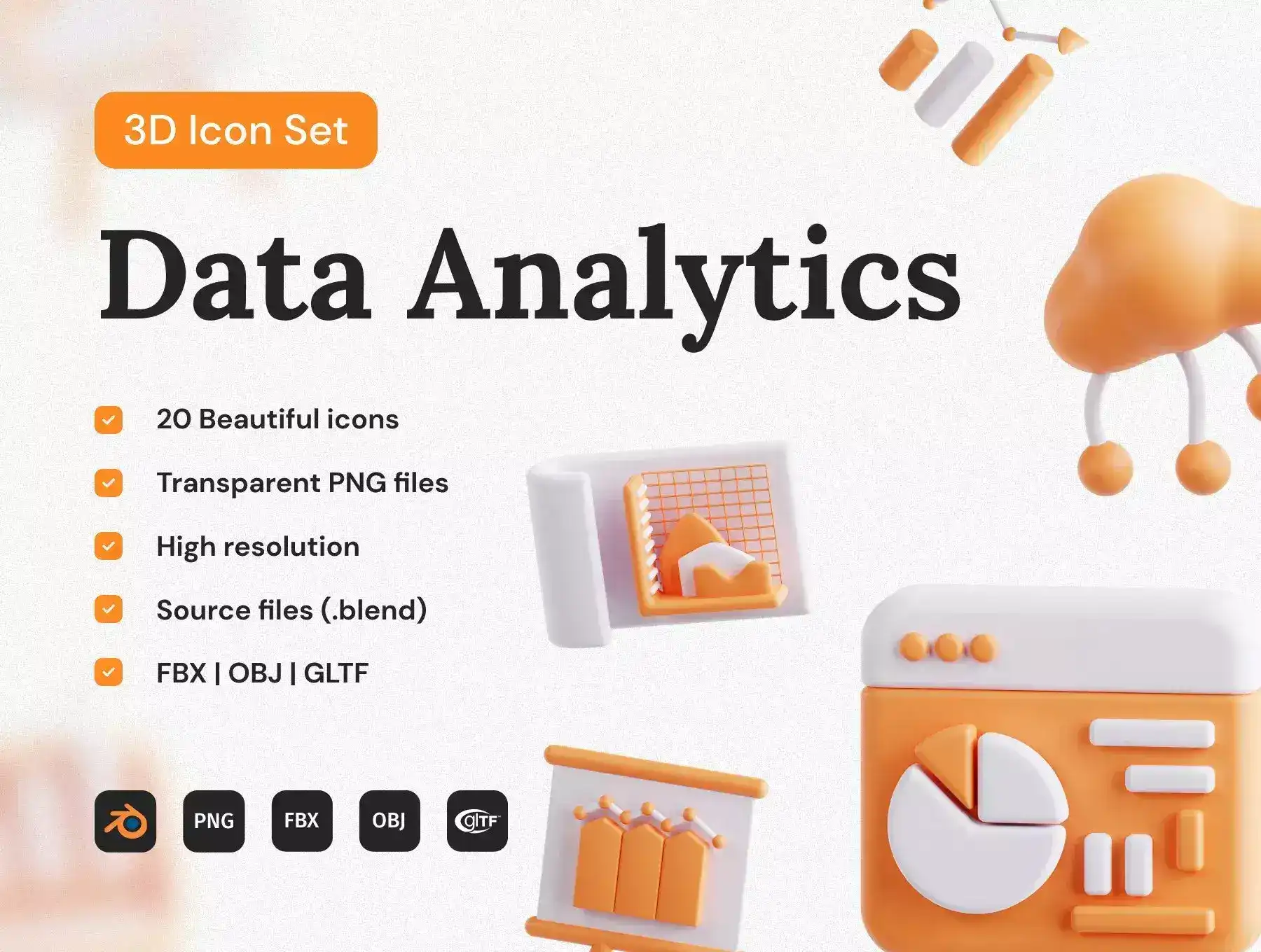 Elevate your mobile app, UI/UX, and web design projects with the 3D Data Analytics Icon, adding a unique and eye-catching element to your designs.