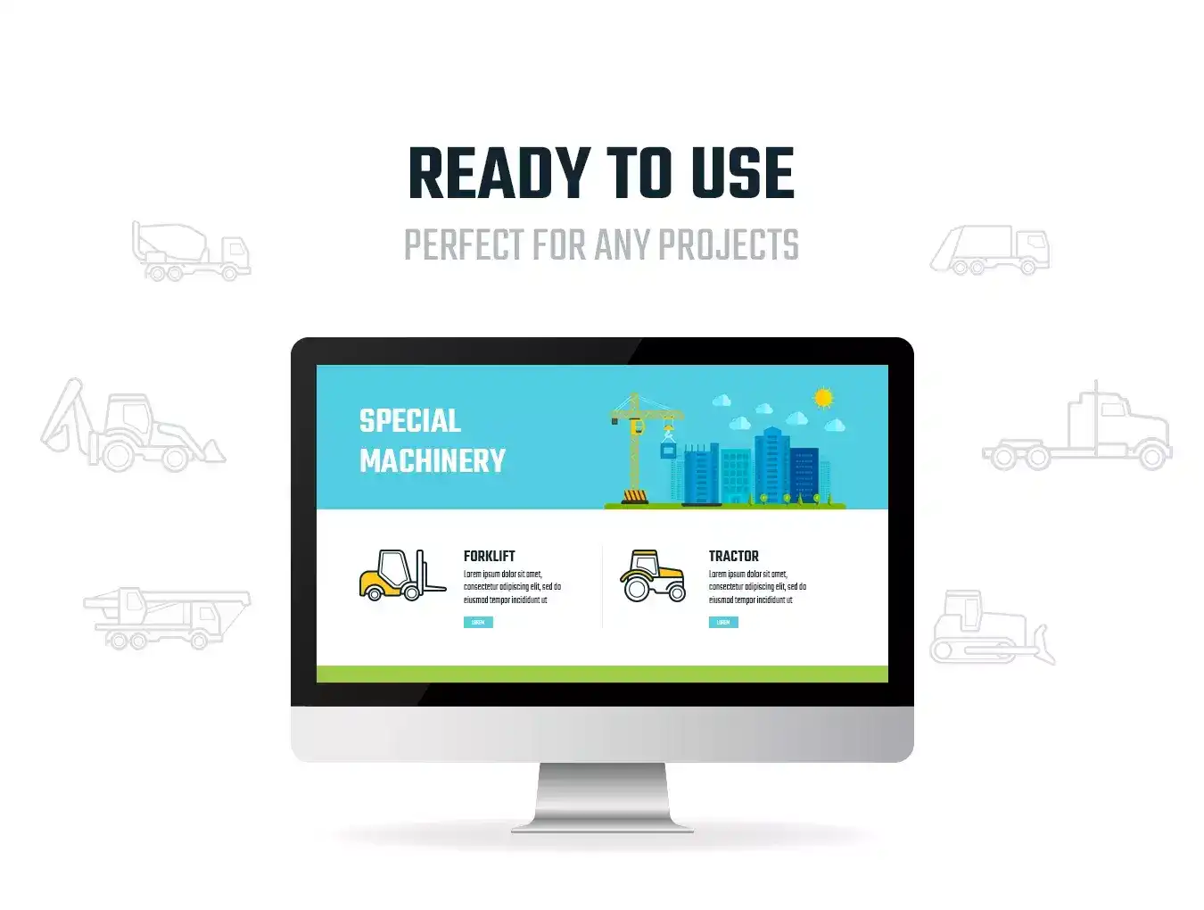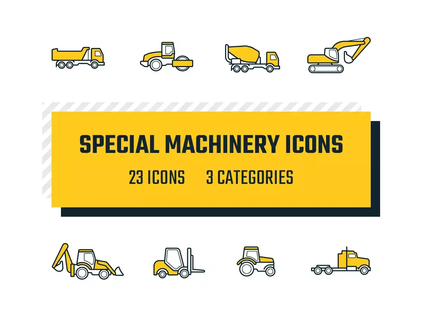 Special machinery Icon Set is designed with love of detail and quality. It is ideal for working with sites, applications and interfaces. A wide selection will satisfy all visualisations needs. Special machinery Icon Set is completely vector and easy to edit.