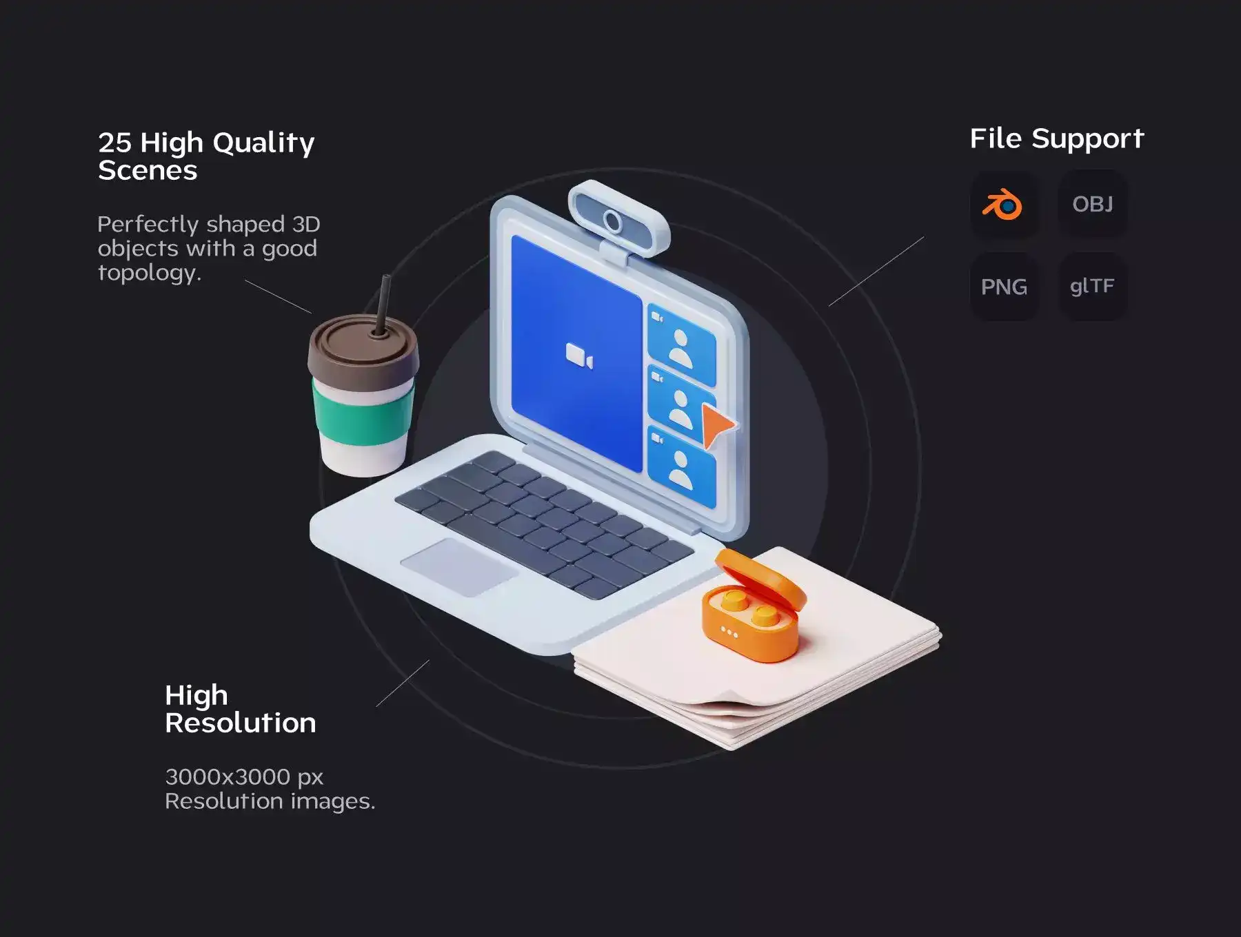 The pack includes 25 unique illustrations. Easily customizable with .blend .webp .obj & .glTF
