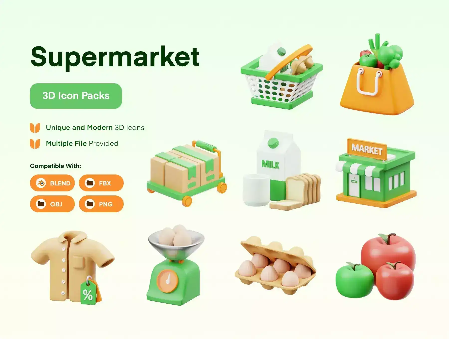 16 ready-made Supermarket 3D Icon file objects for Websites, Mobile Apps, and more. Enhance your designs with 3D Assets.