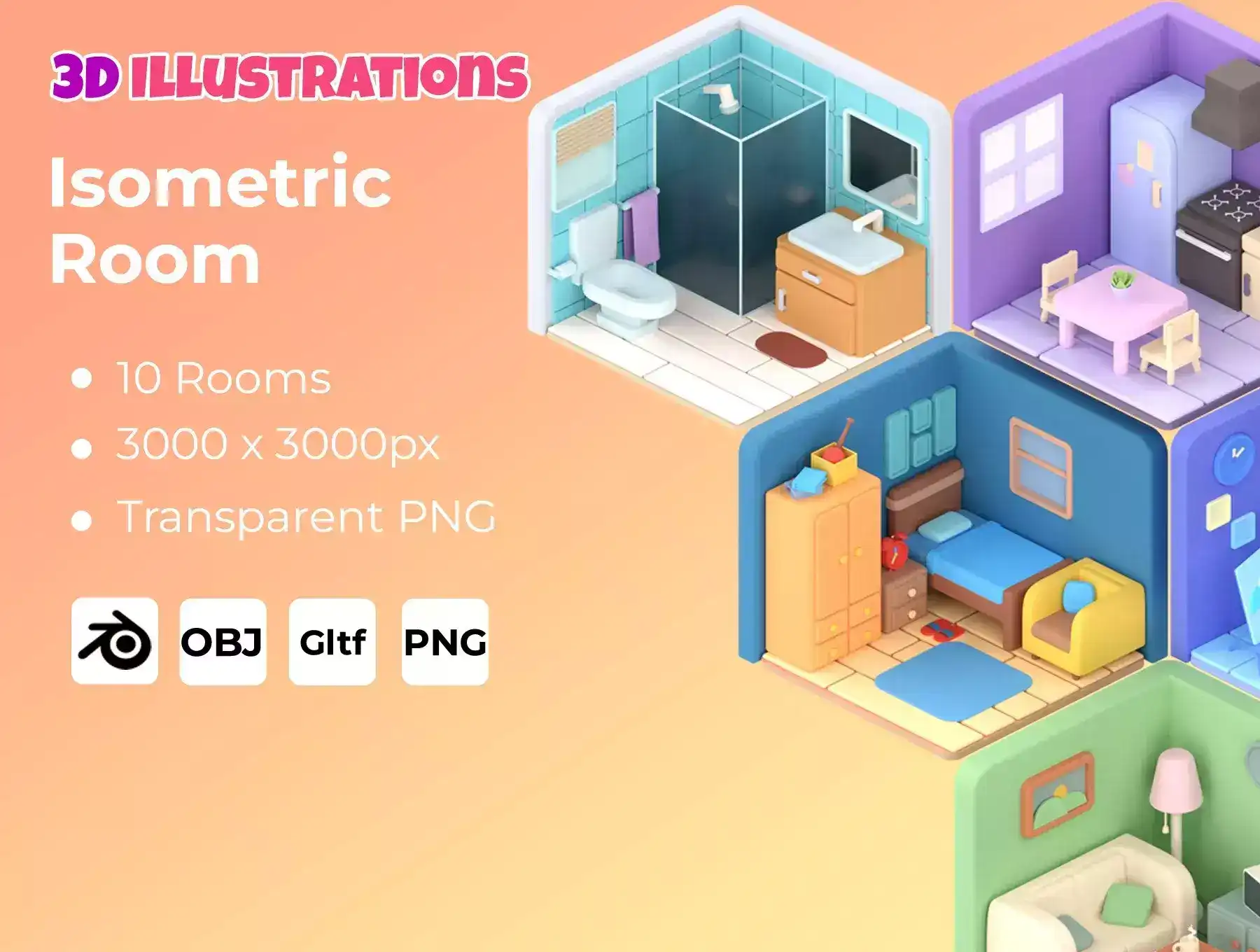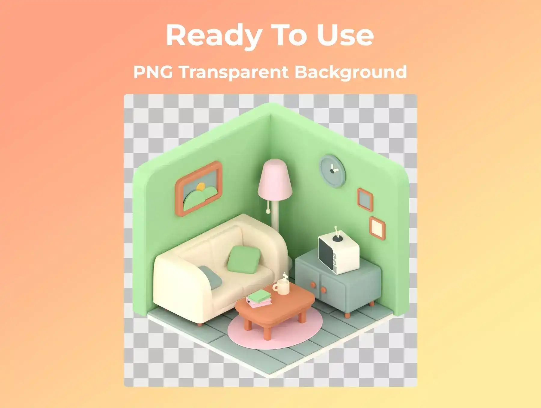 3D isometric rooms can be used for design needs such as UI design, web design, animation, presentations, posters and flyers, social media, content creators, and others.Perfect for completing your design.