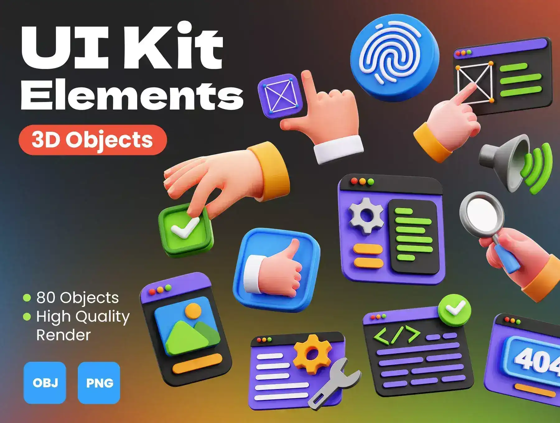 3D UI Kit Elements can be used for design needs, animation, web design, UI design, presentation slides, posters, and others.Perfect for completing your Design.✨