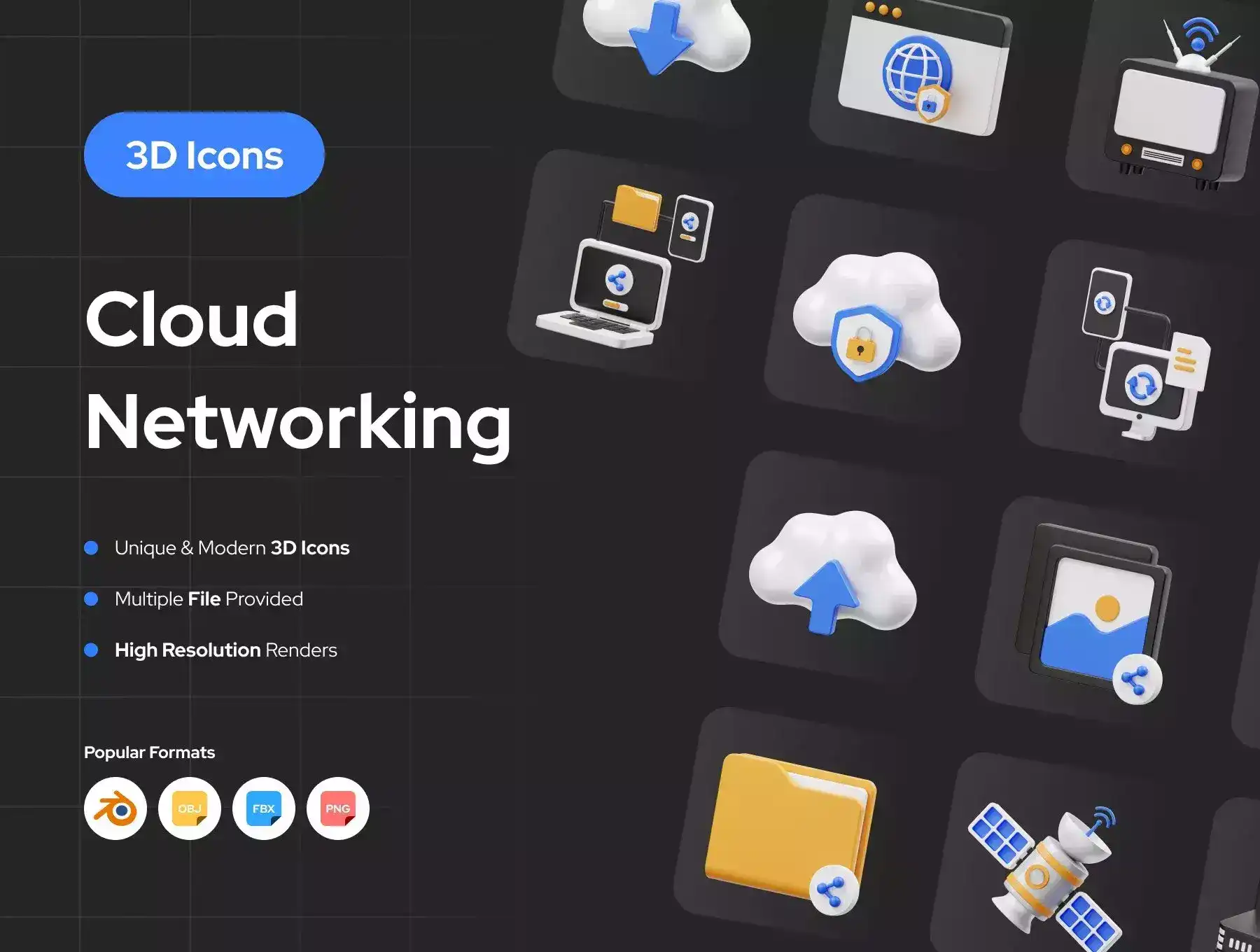 15 ready-made Cloud Networking 3D Icon file objects for Websites, Mobile Apps, and more. Enhance your designs with 3D Assets.