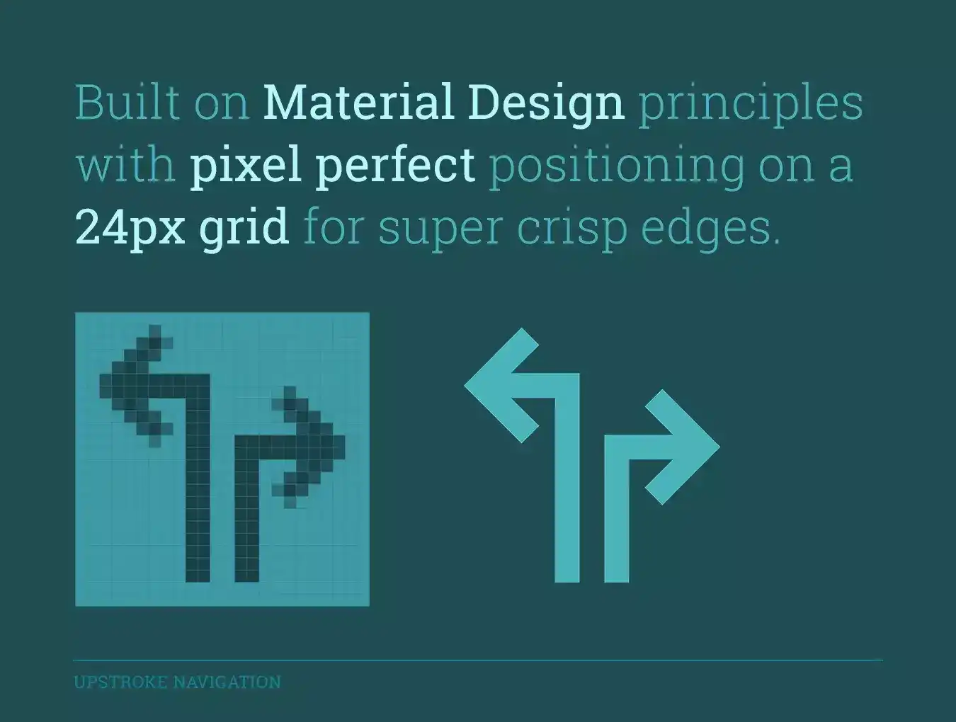 Upstroke Navigation is a set of 64 meticulously crafted icons guaranteed to enhance any project. They’re built on a strict 24px grid following Google Material Design principles so you can be sure the edges are sharp & the pixels are perfect. Perhaps the feature that some will find most useful is the lines haven’t been flattened into shapes like many other line icons. This means you can adjust the stroke width to suit your design. 2px is the default width but we recommend anything between 0px and 3px. Navigation is a subset of the Upstroke collection, click the follow button below to be notified when other subsets are released. Next cabs off the rank is 64 UI icons then a set of Business icons. We hope you enjoy & welcome your feedback!