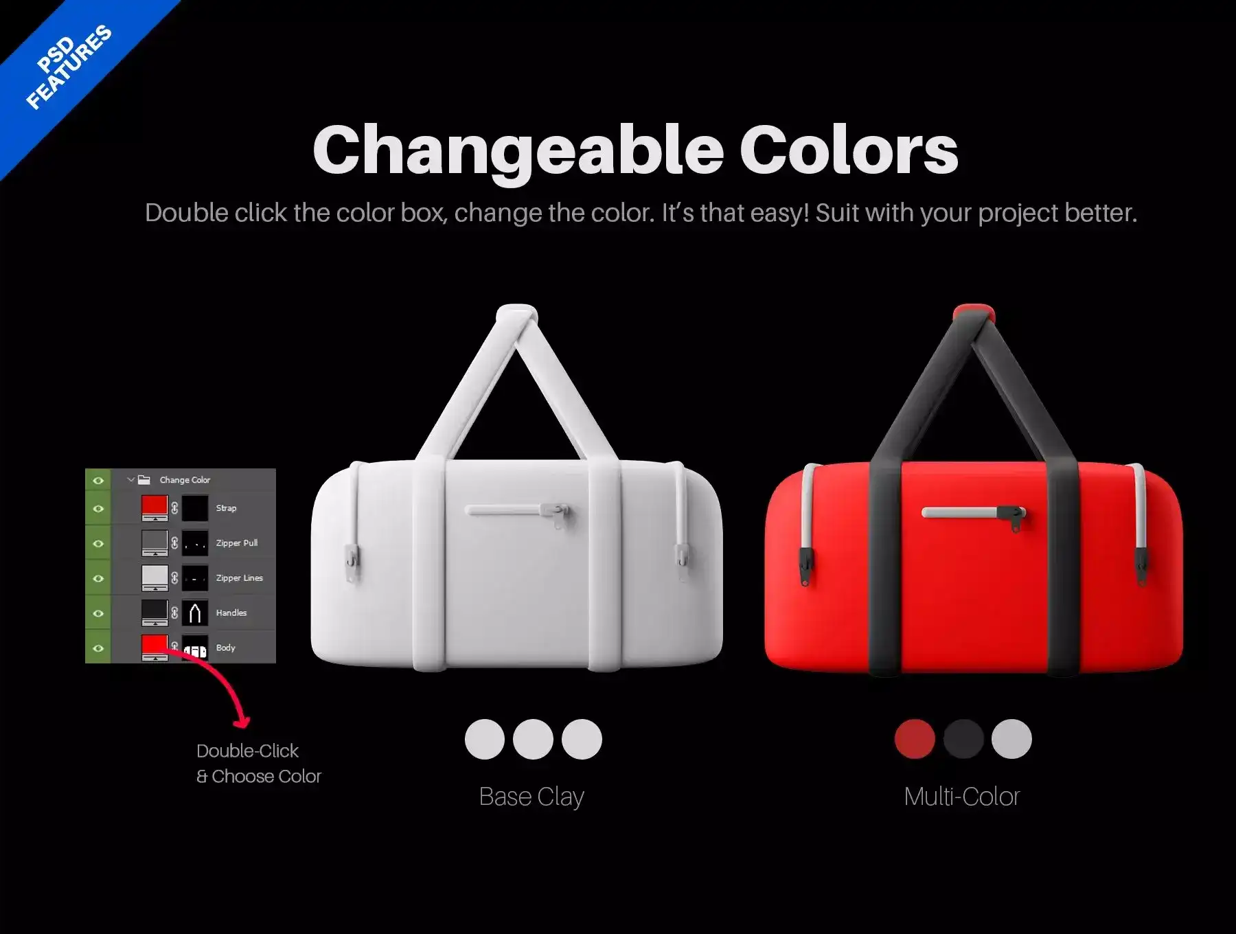 Full Customization, Change Colors and Editable Looks with Editable PSD & 3D Blender