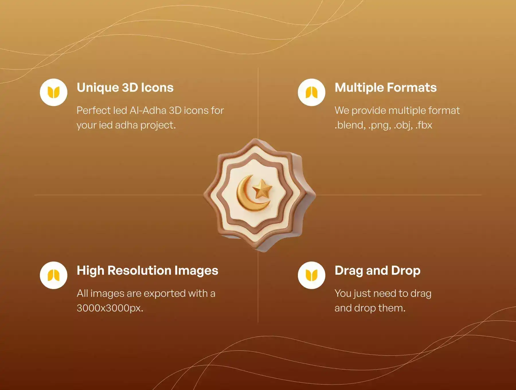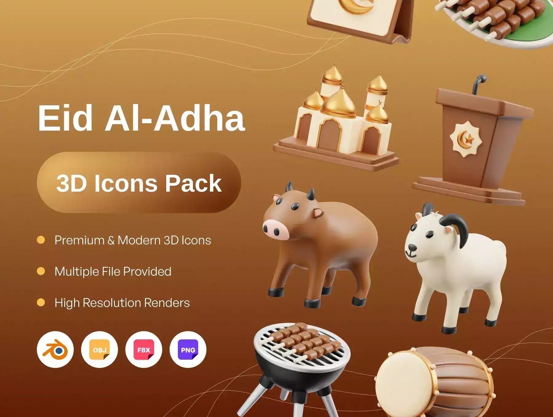 15 ready-made Eid Al-Adha 3D Icon file objects for Websites, Mobile Apps, and more. Enhance your designs with 3D Assets.