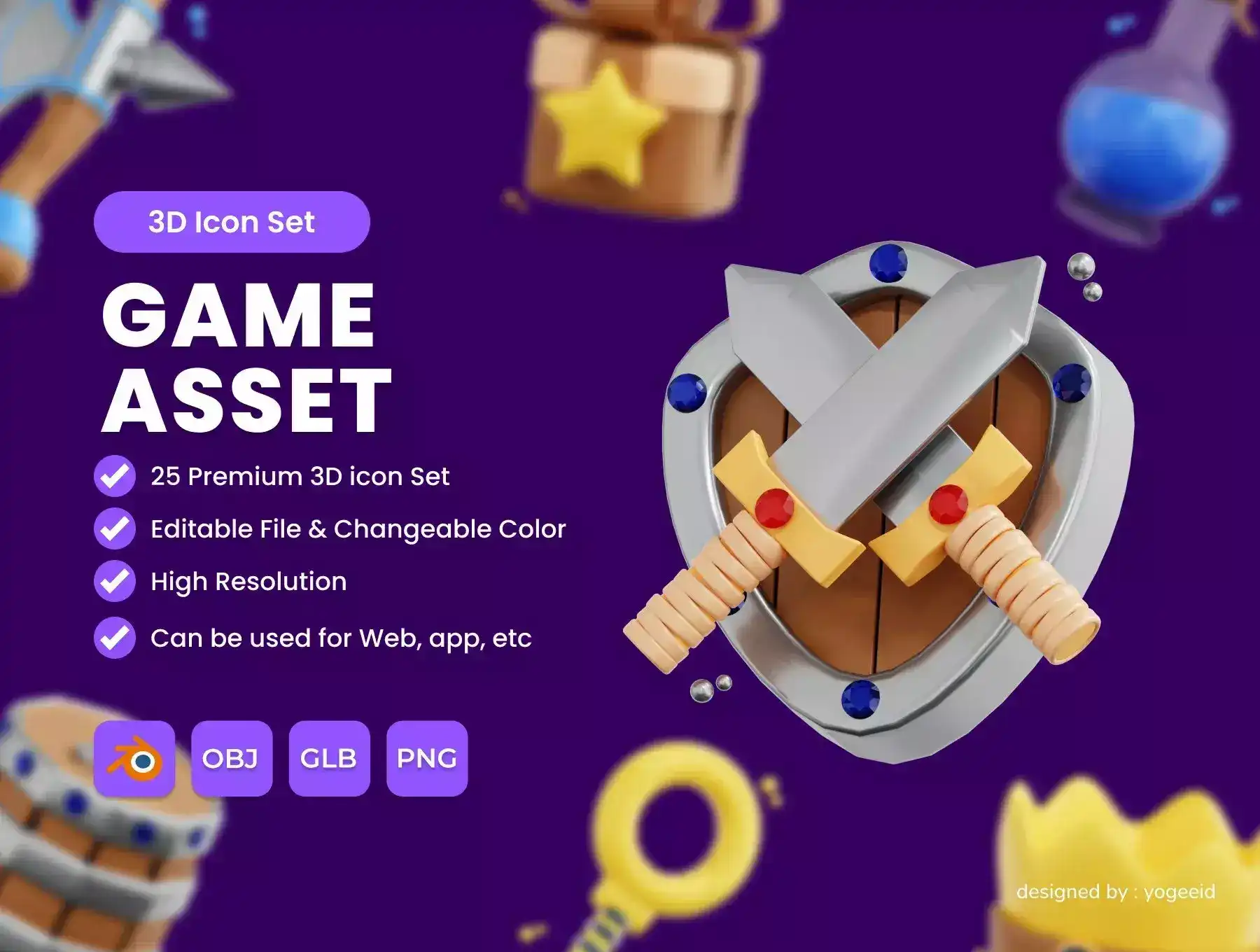 This illustration is 3D Game Asset Icon Set Pack. This illustration can be used for any design project needs.