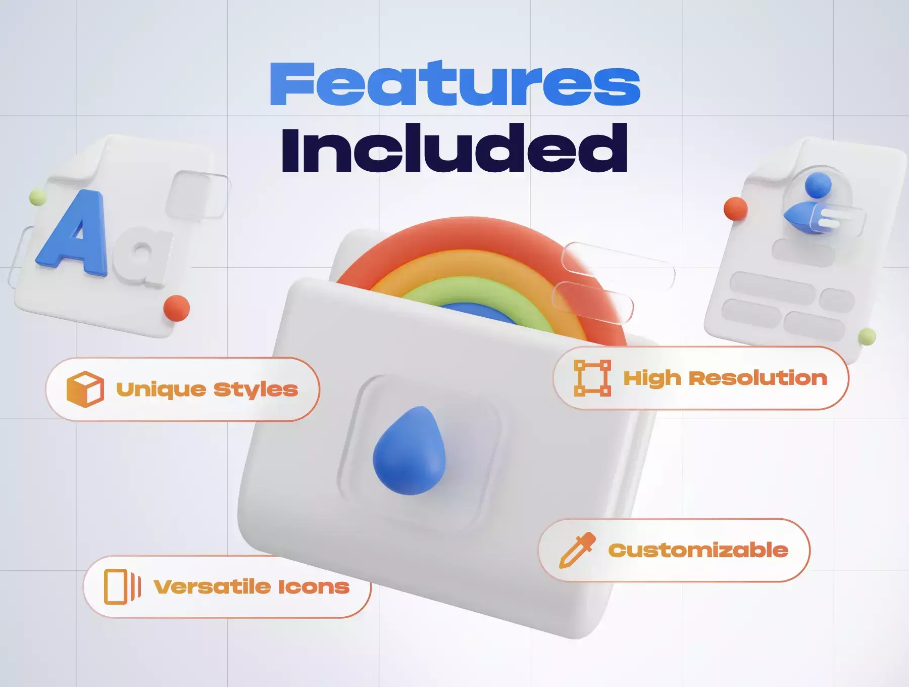 These 3D Icons are the perfect element to use on your digital projects, advertising, and any design prototype needs. Came with full colors and creative style, it will make your design be more stunning.