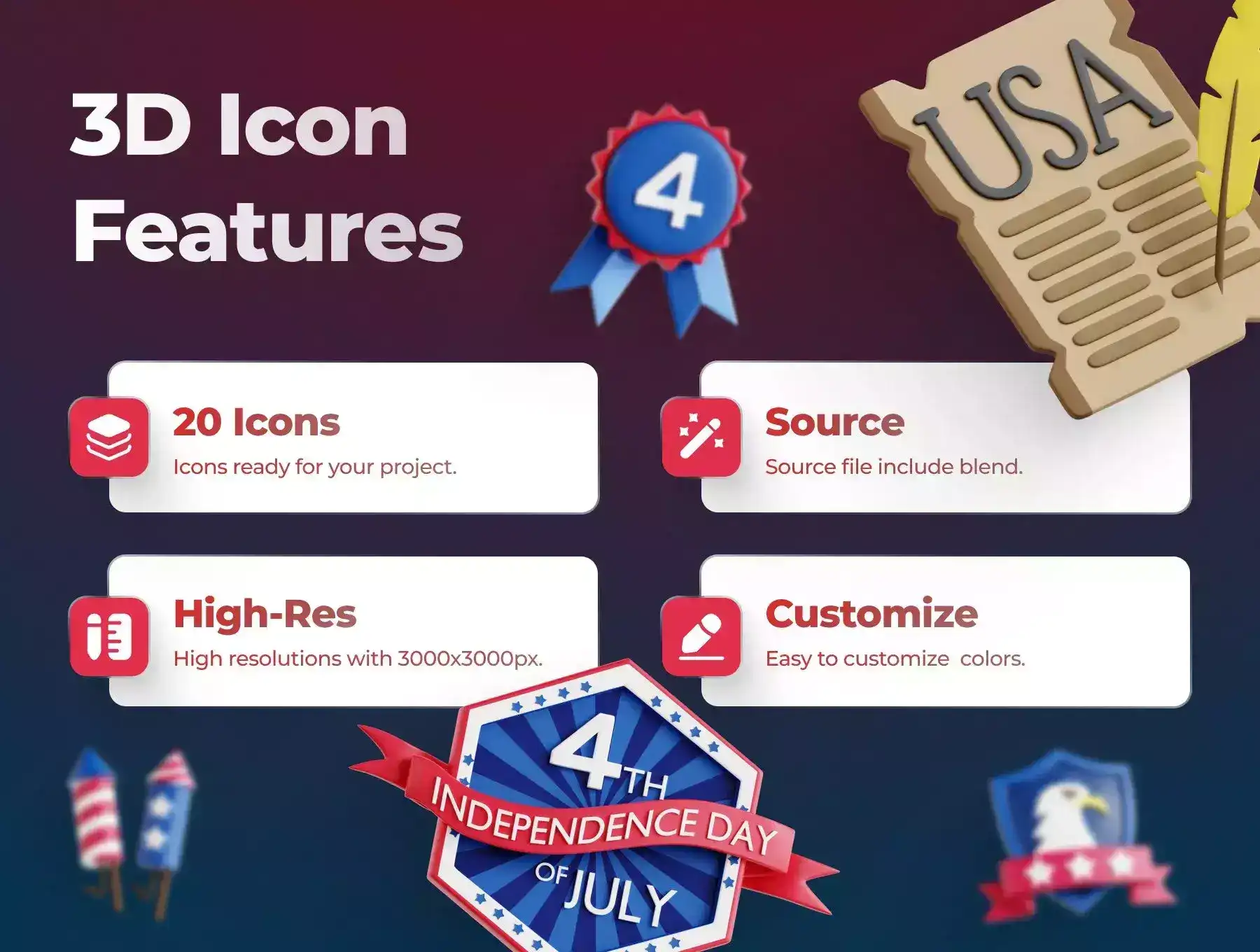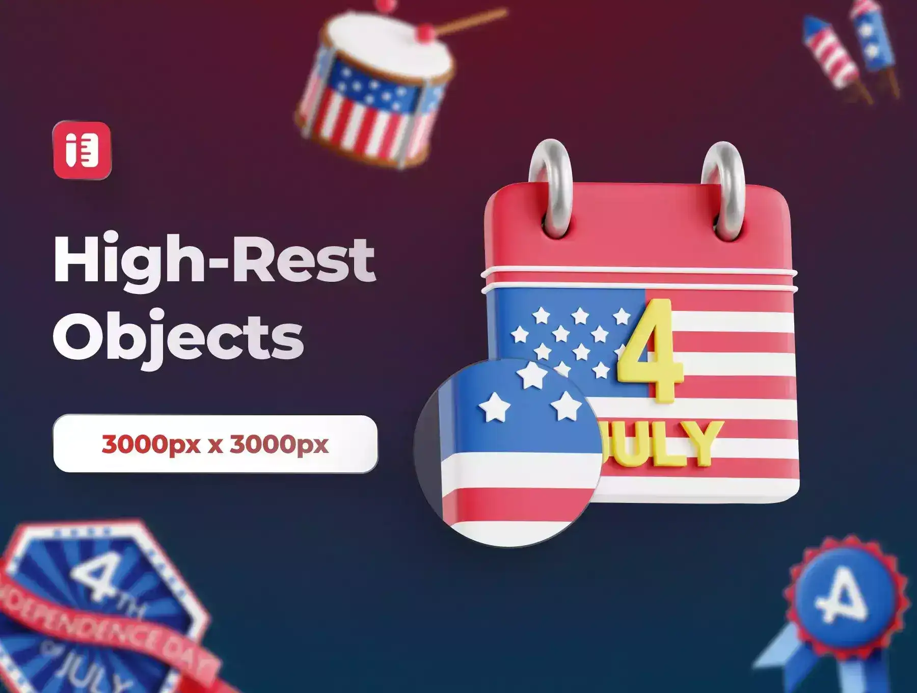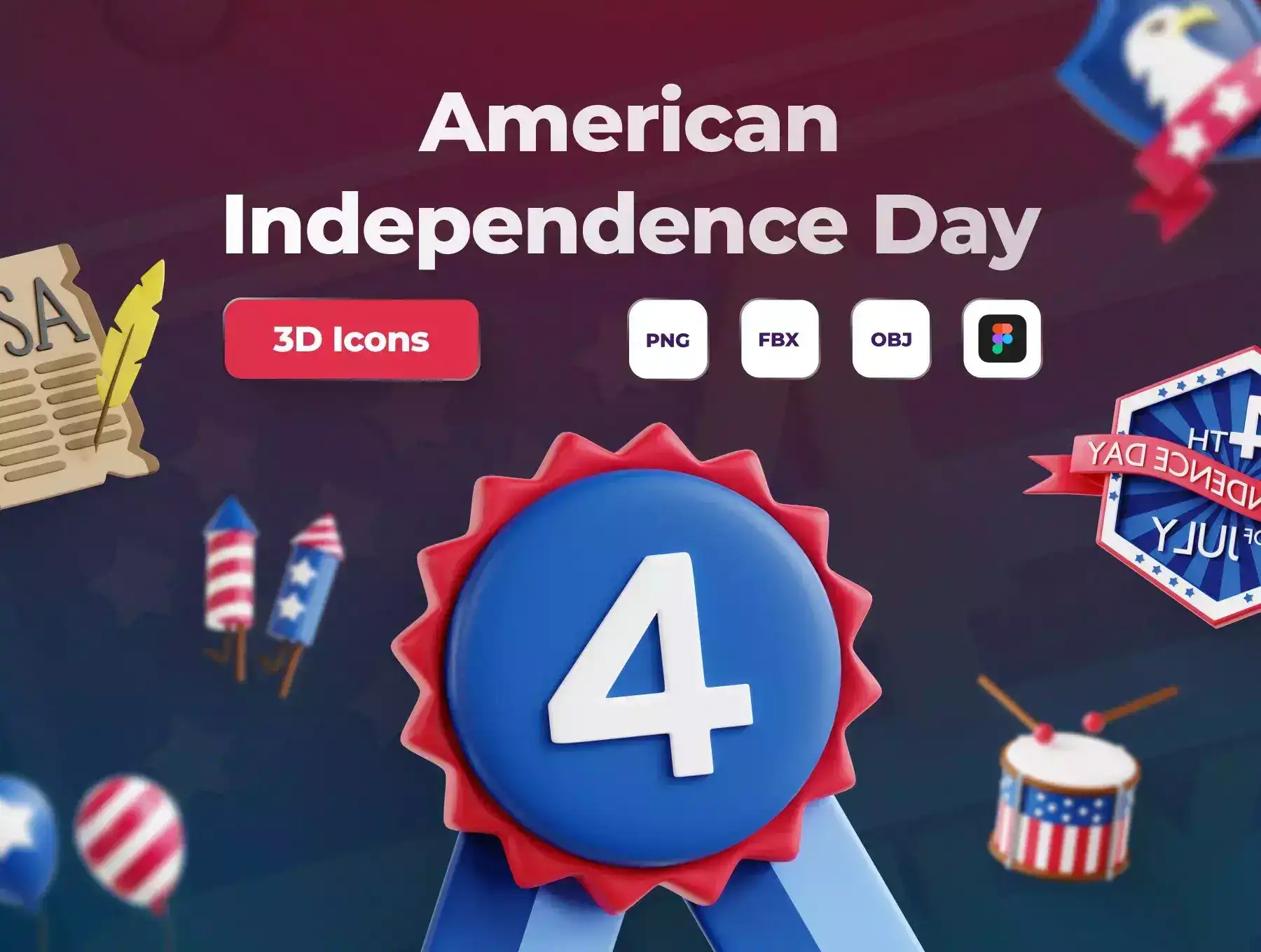 Elevate your mobile app, UI/UX, and web design projects with the 3D American Independence Day Icon Set, adding a unique and eye-catching element to your designs.