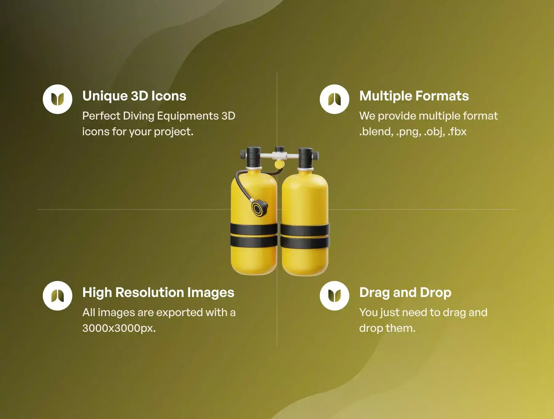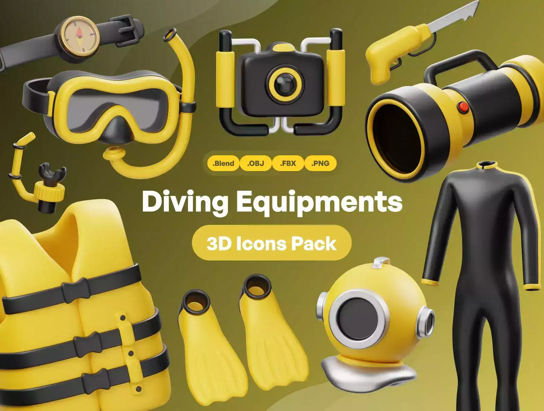15 ready-made Diving Equipment 3D Icon file objects for Websites, Mobile Apps, and more. Enhance your designs with 3D Assets.