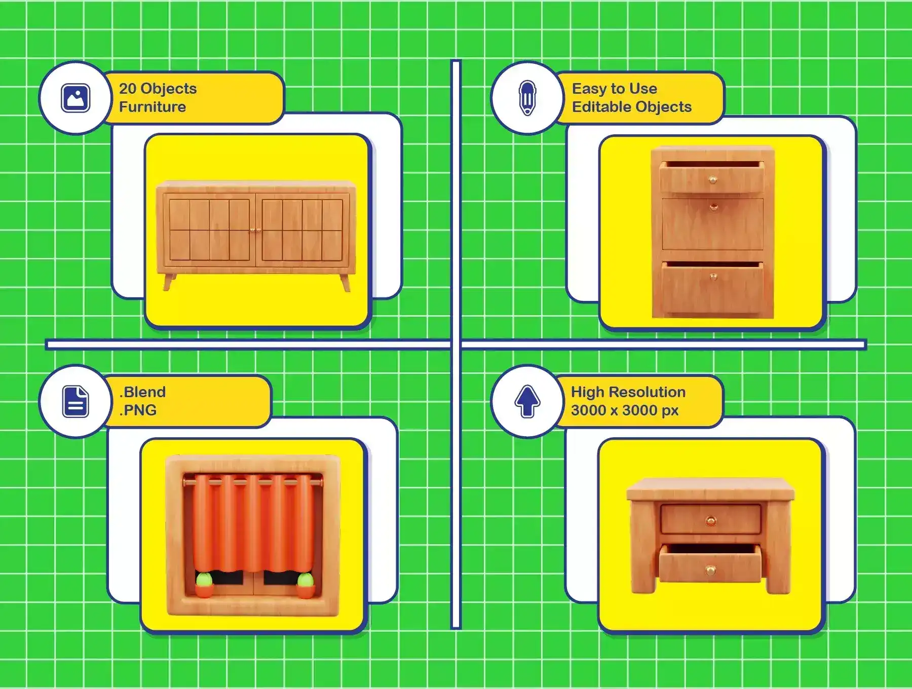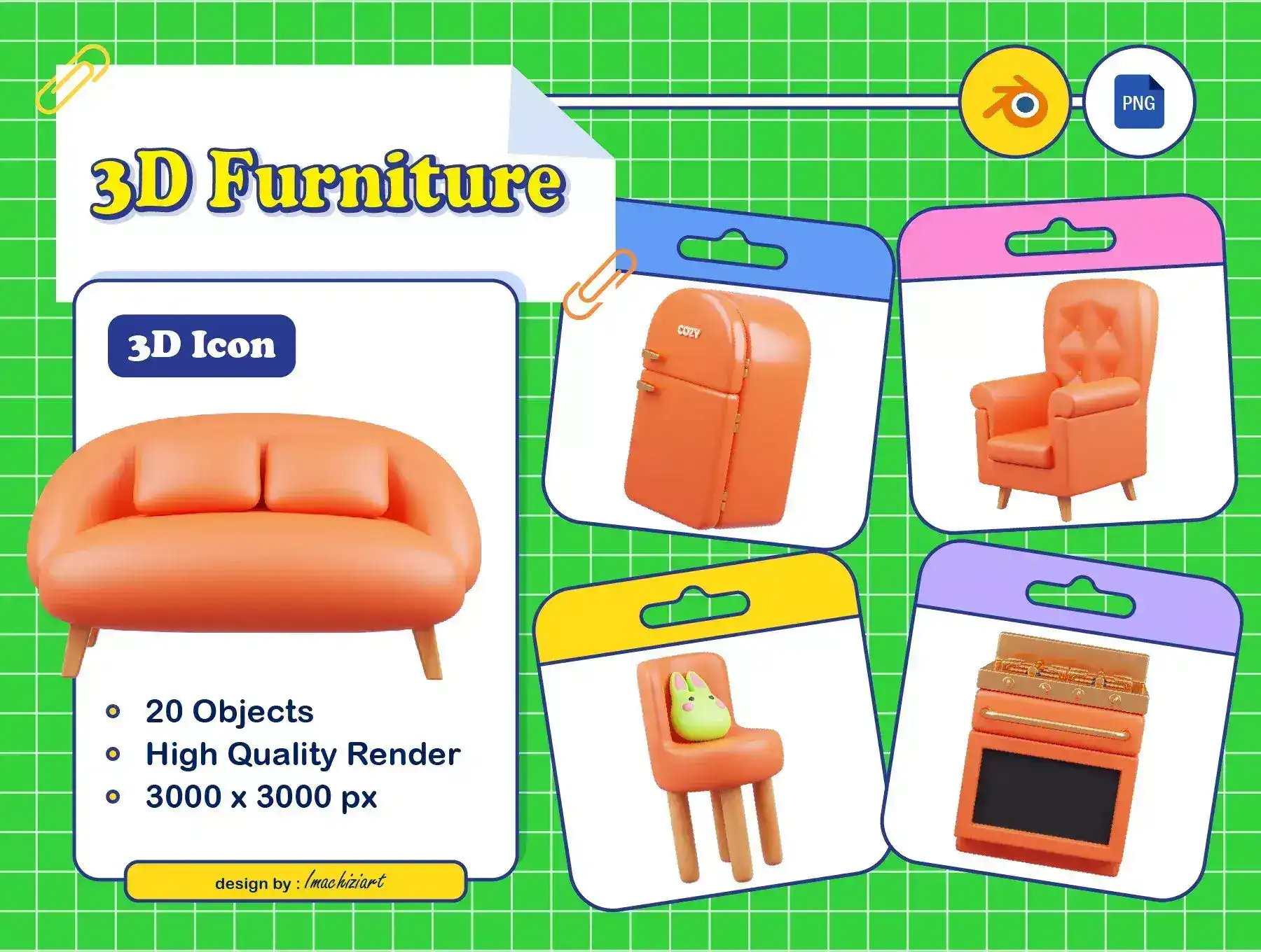 Cute Orange Furniture 3D Assets can be used for design needs, animation, web design, UI design, presentation slides, posters, and others.