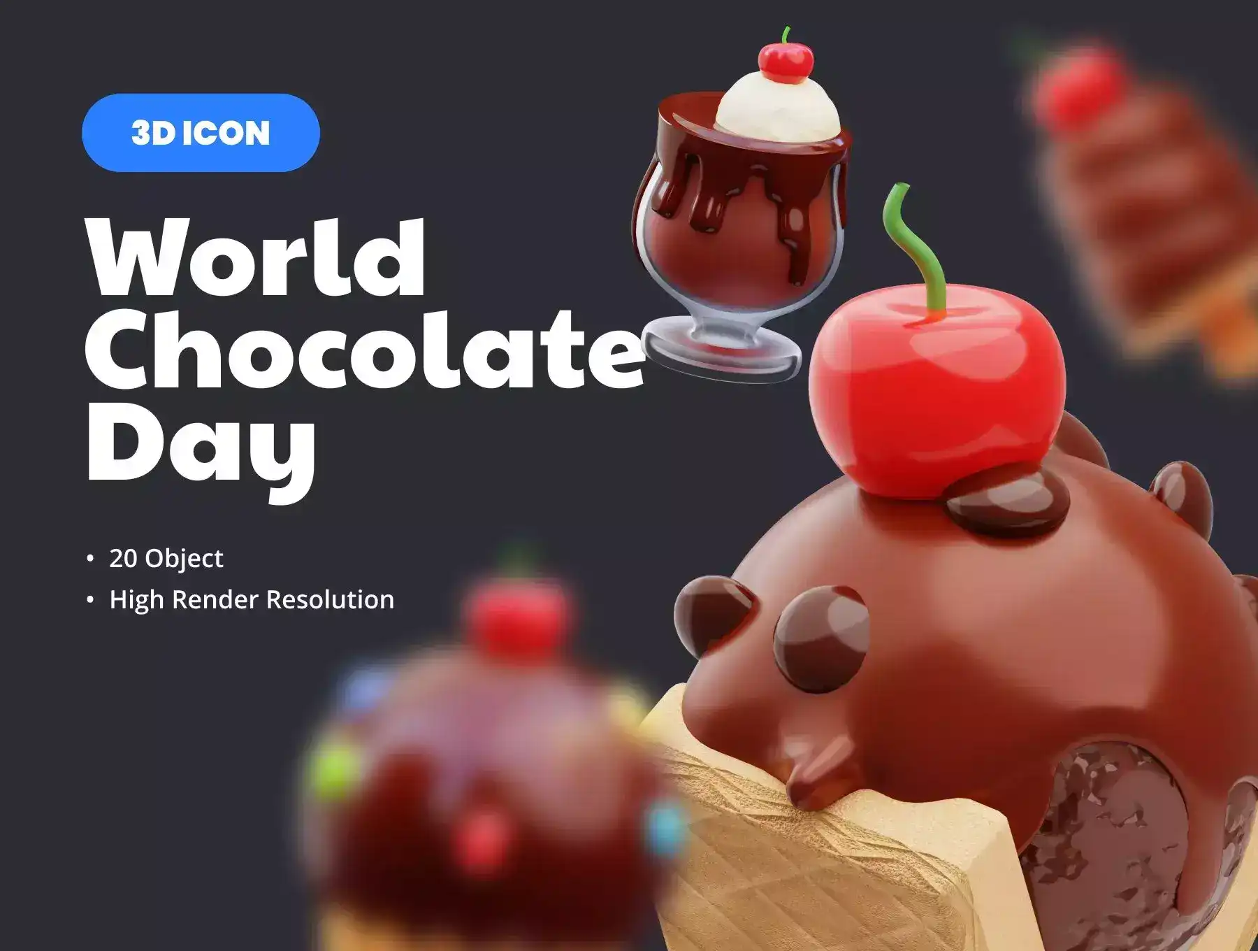 Introducing 3D Icon World Chocolate Day: The Cutest and Simplest Treat for Any Illustration!