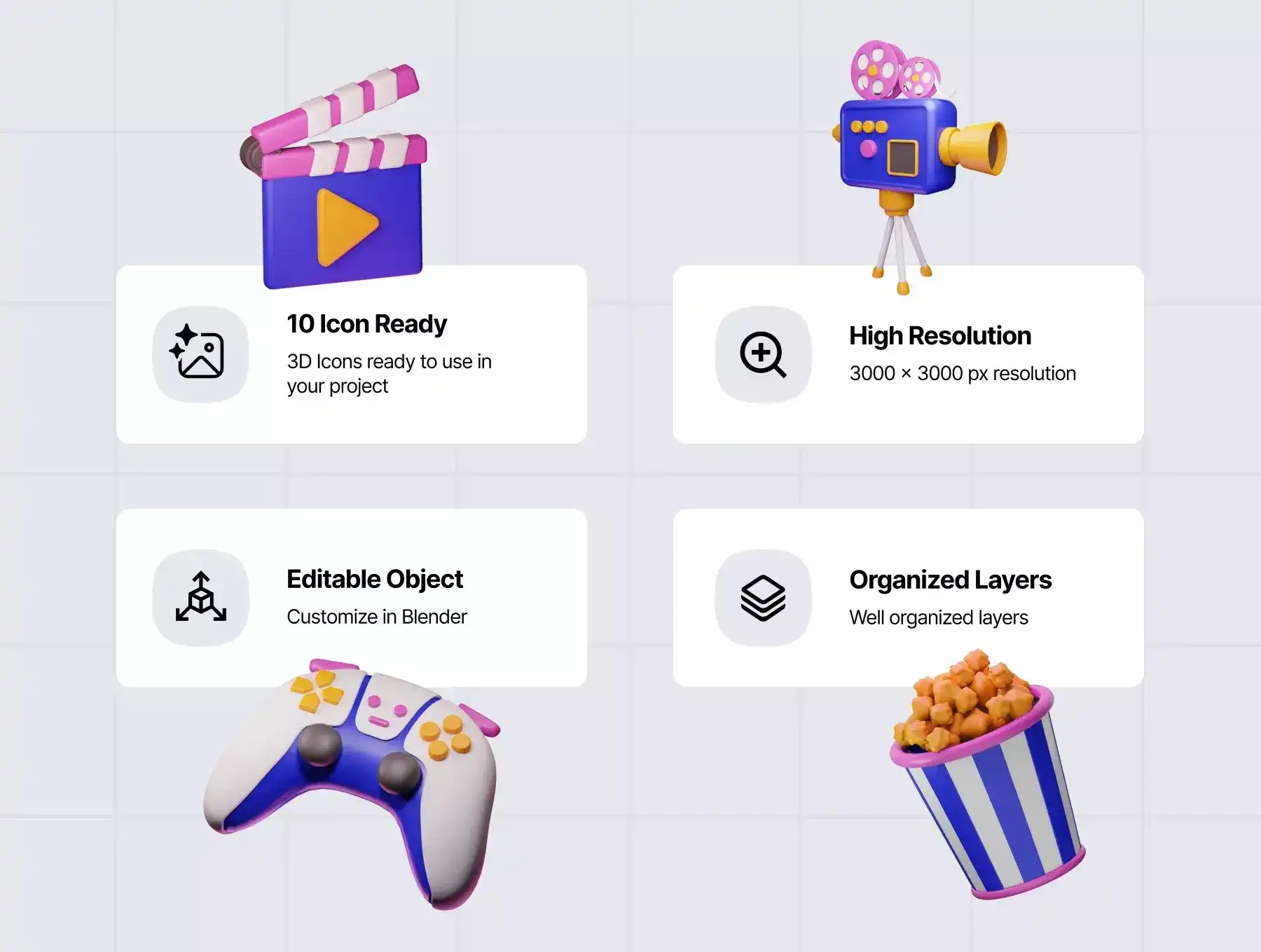 This is a Entertainment pack of 3d Icon for design need, apps, Ui Design, web design, presentation, poster, social media advertising, content creator, and other.