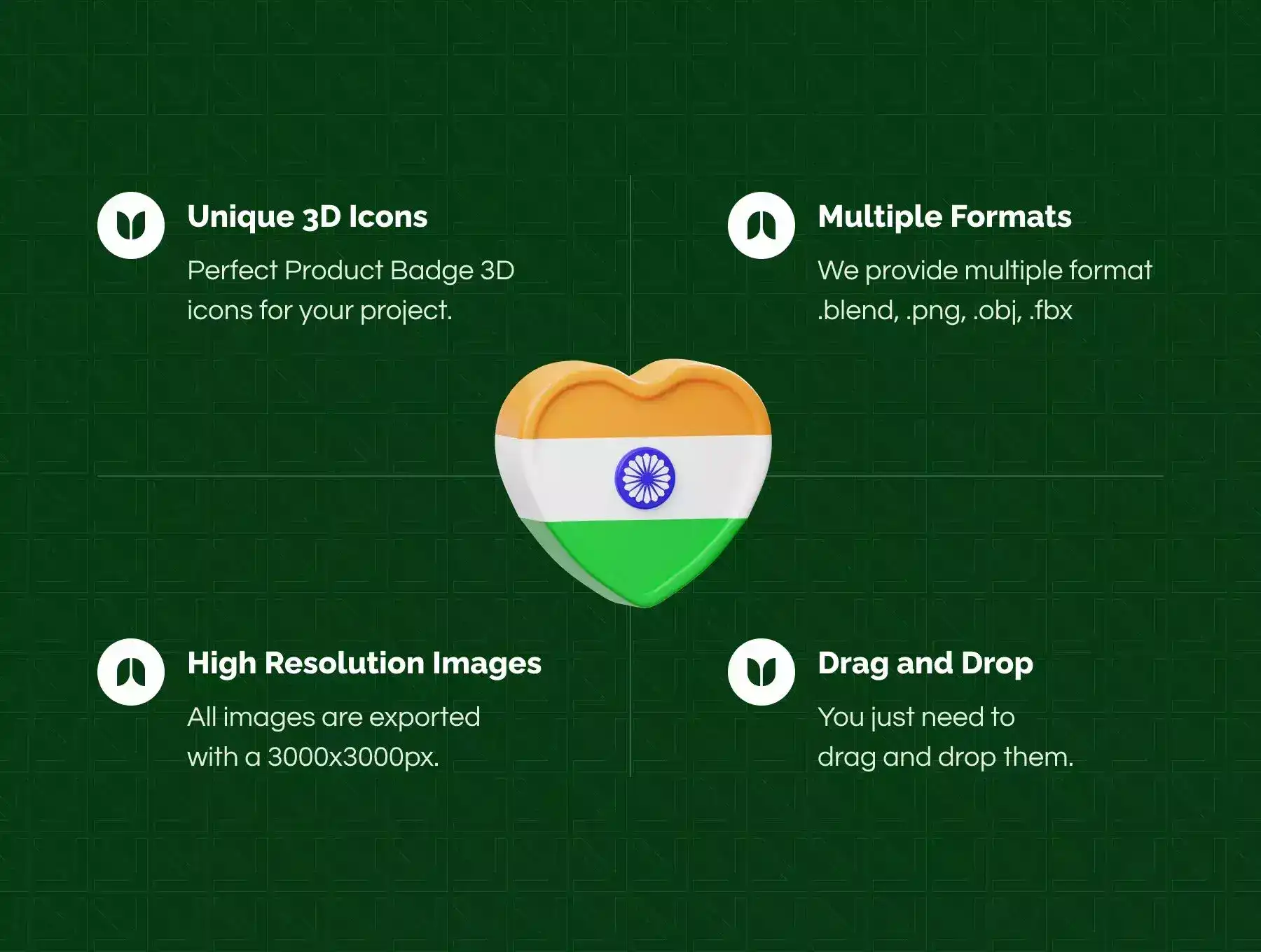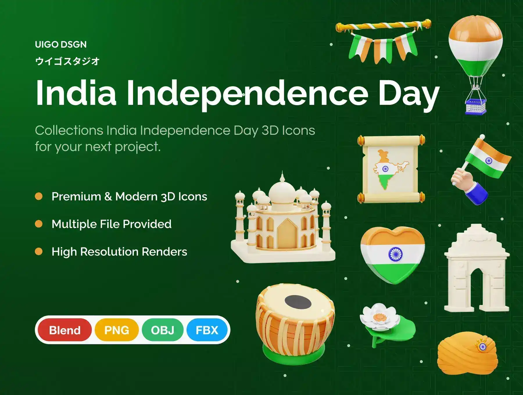 20 ready-made India Independence Day 3D Icon file objects for Websites, Mobile Apps, and more. Enhance your designs with 3D Assets.