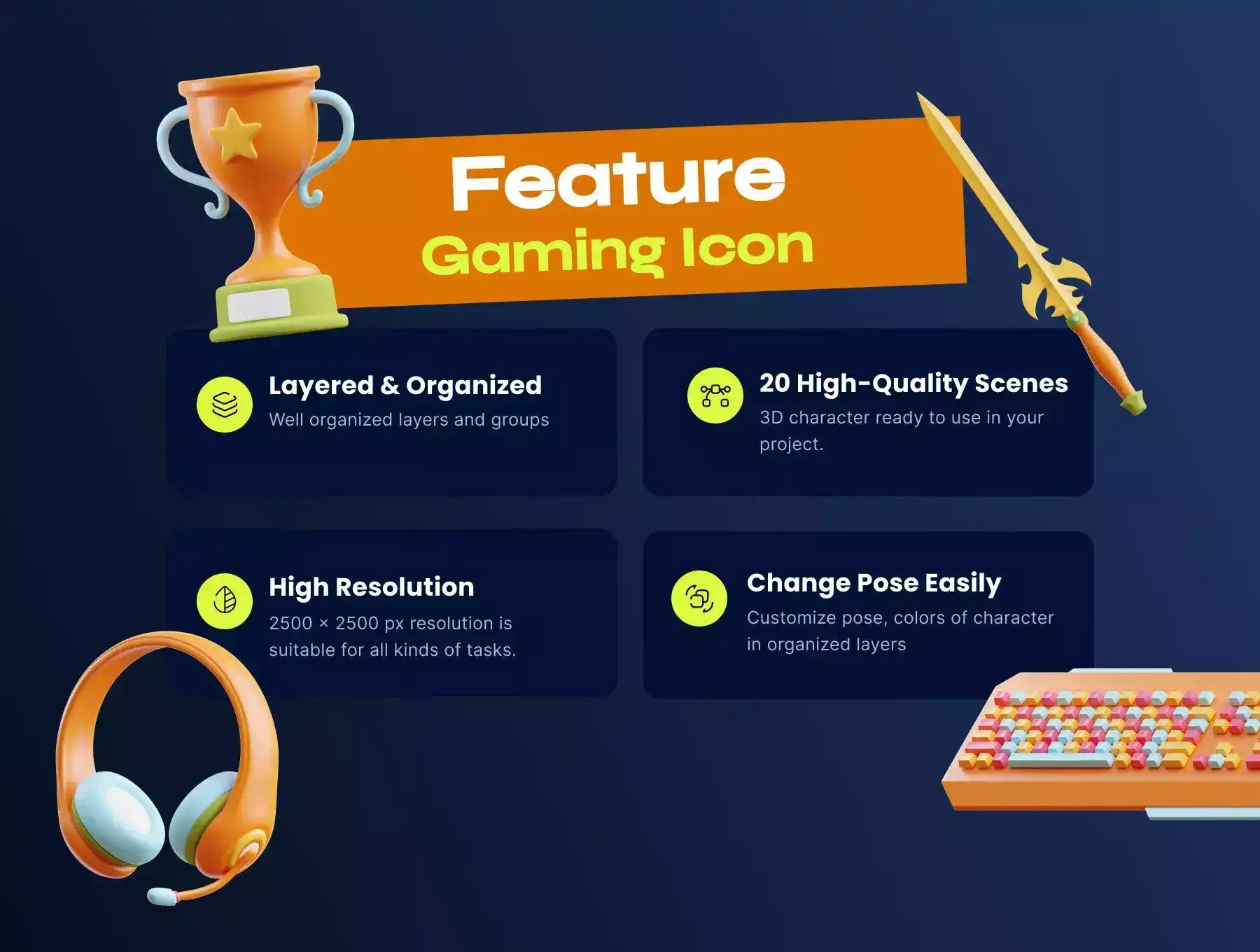 This is a Gaming 3D Icon Pack for design need, apps, Ui Design, web design, presentation, poster, social media advertising, content creator, and other.