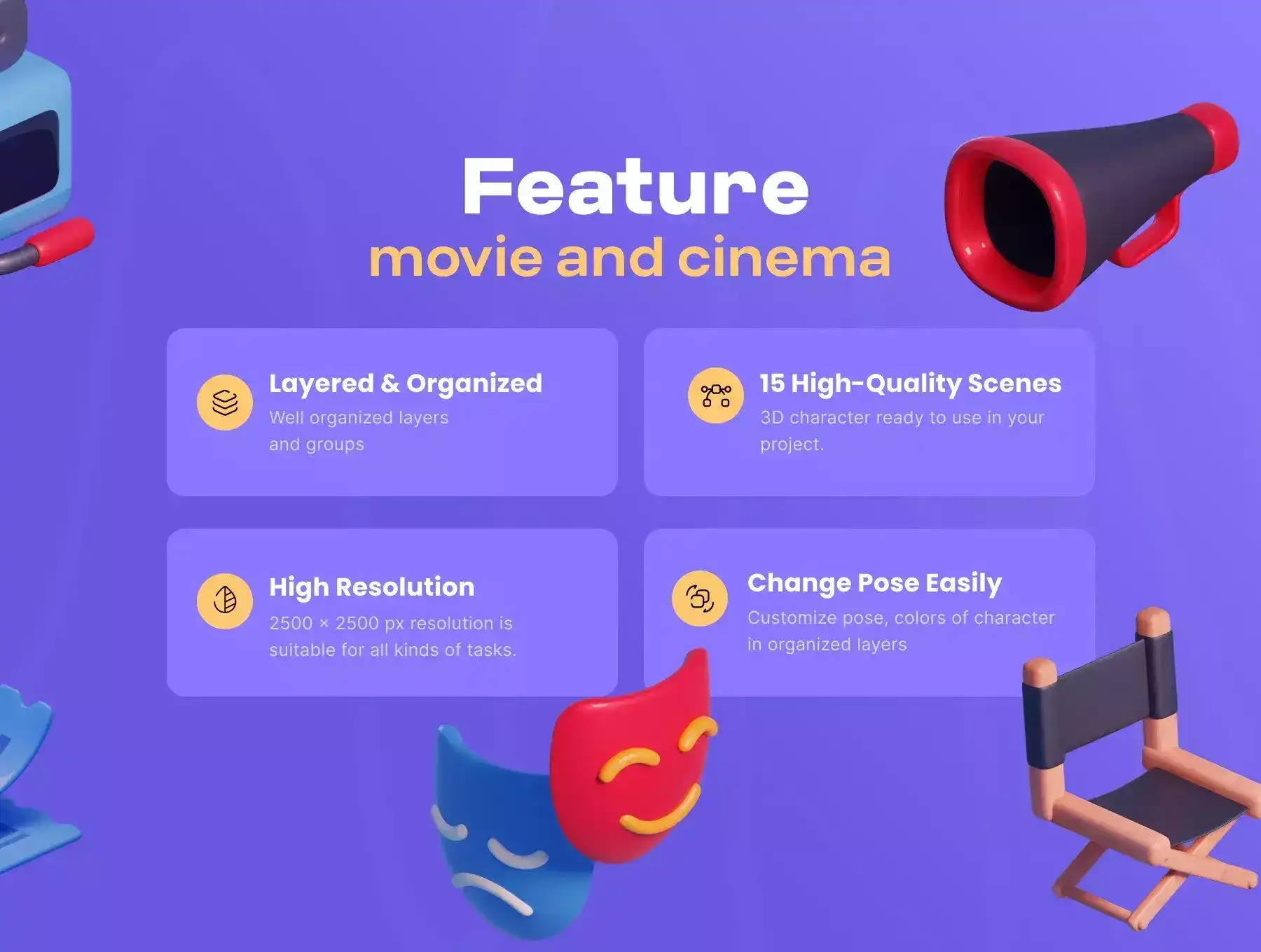 Movie & Cinema 3D icon Pack for Websites, Mobile Apps, and more. Enhance your designs with 3D Assets.