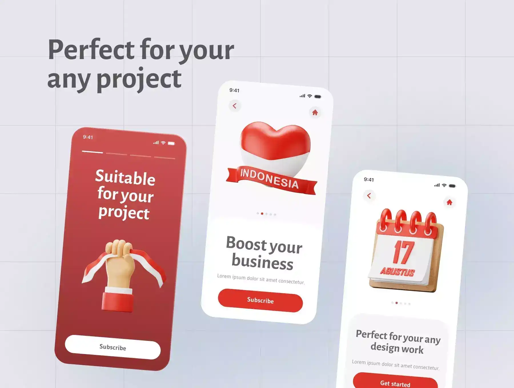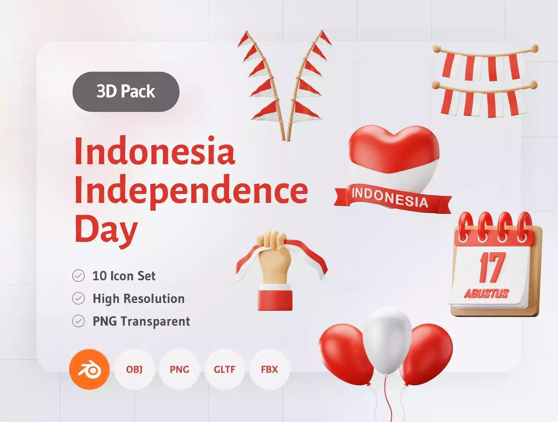 3D Indonesia Independence Day Icon Pack is commonly used for any project where you have to know where everything is positioned. What is the best part? this 3D Product Asset is ready to use, can be customized in color in the blender software, and has a high resolution rendering file that is ready to support your project as a stand-out illustration such as a Landing Page Project, Mobile App Project, Flyer Project or other branding projects. You can get several benefits from this new 3D asset. Create your amazing work right now!