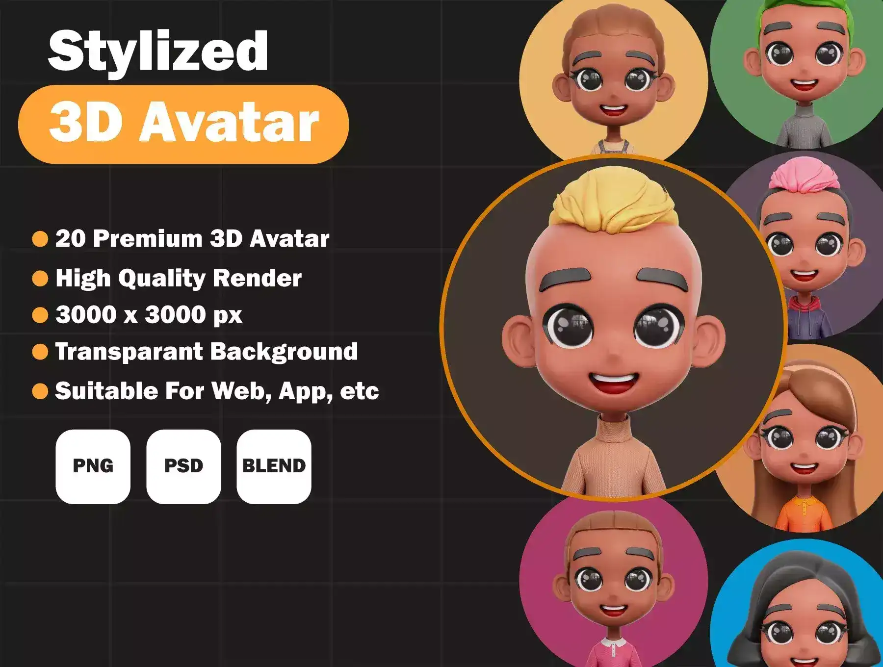 Stylized 3D Avatar Pack is Suitable for apps, UI, presentations, posters, social media, content creation, etc. in this pack you are able to change the material of the object.