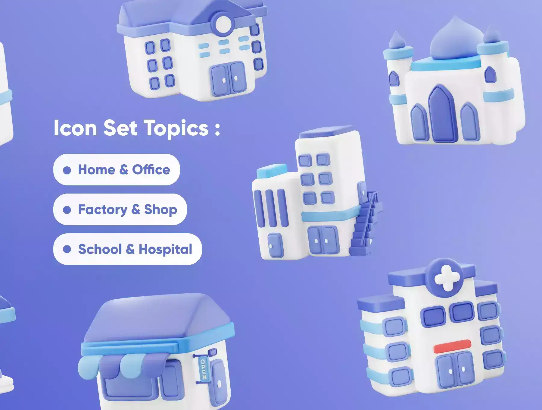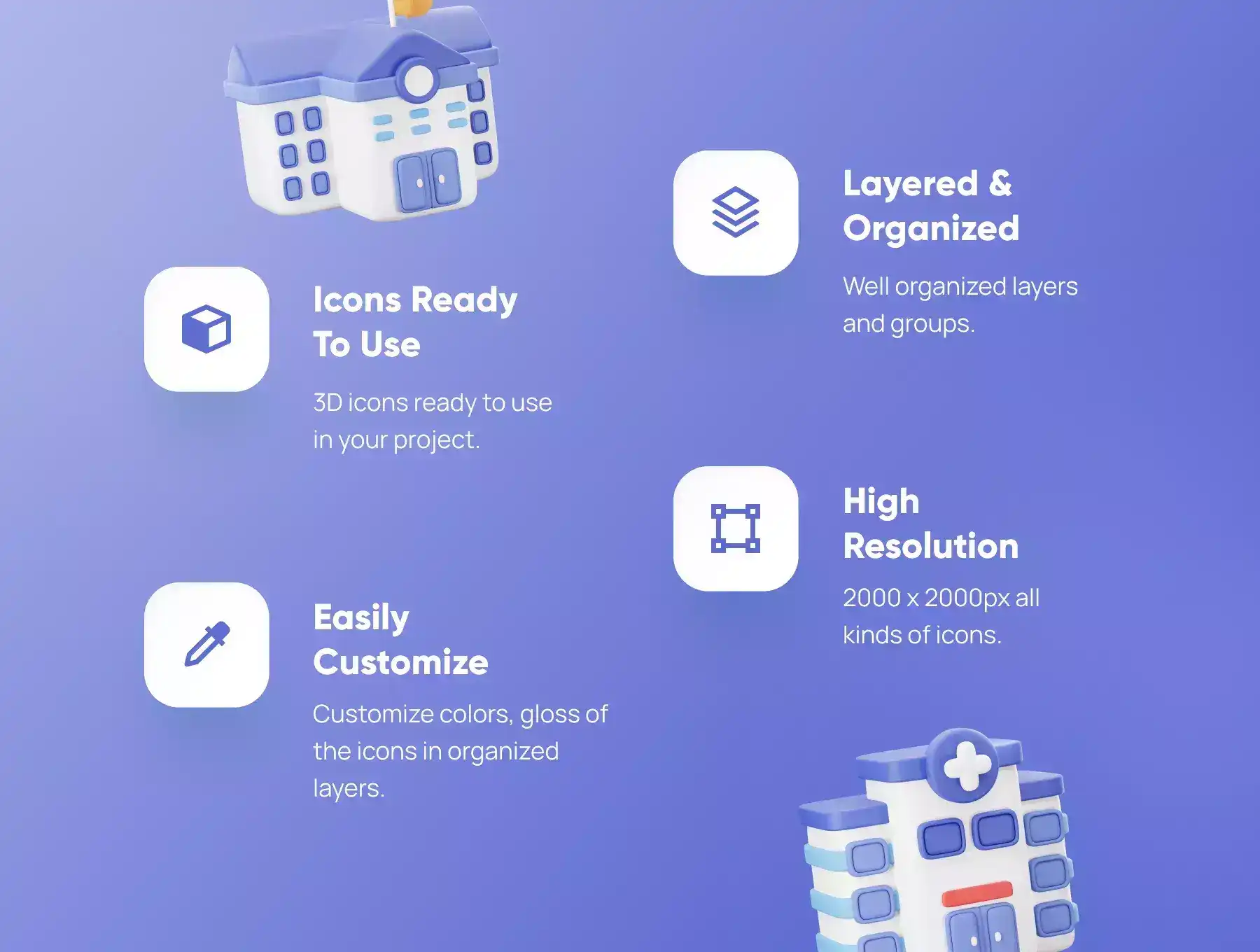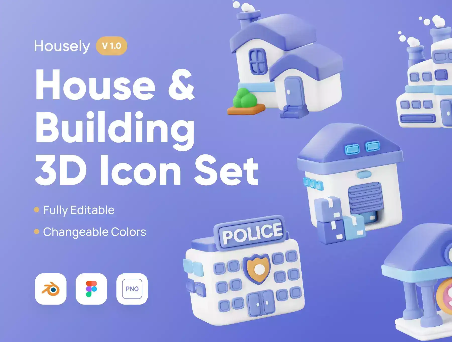 Housely is a pack of custom 3D icons suitable for any House and building niche.