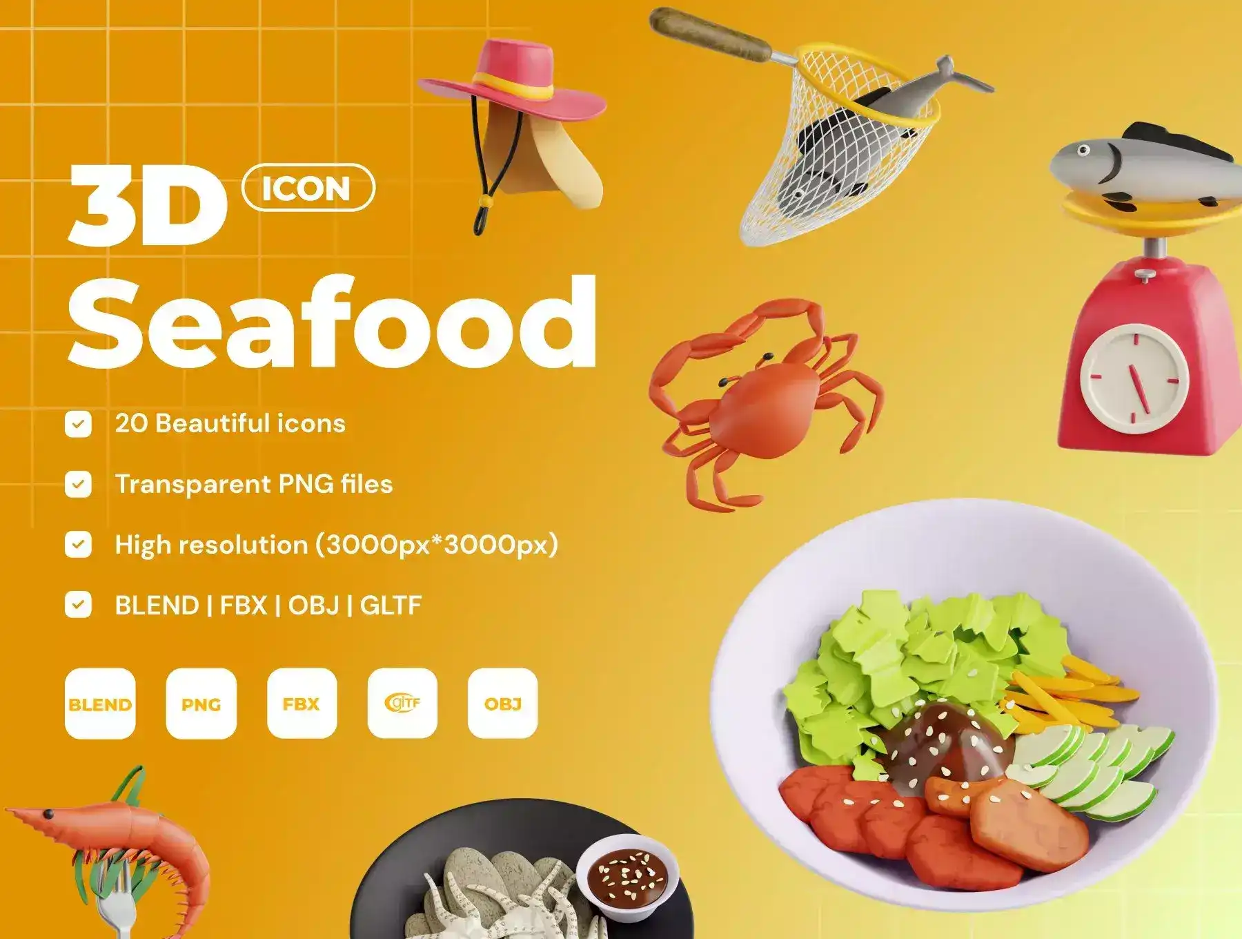 Introducing the Seafood 3D Icon Set