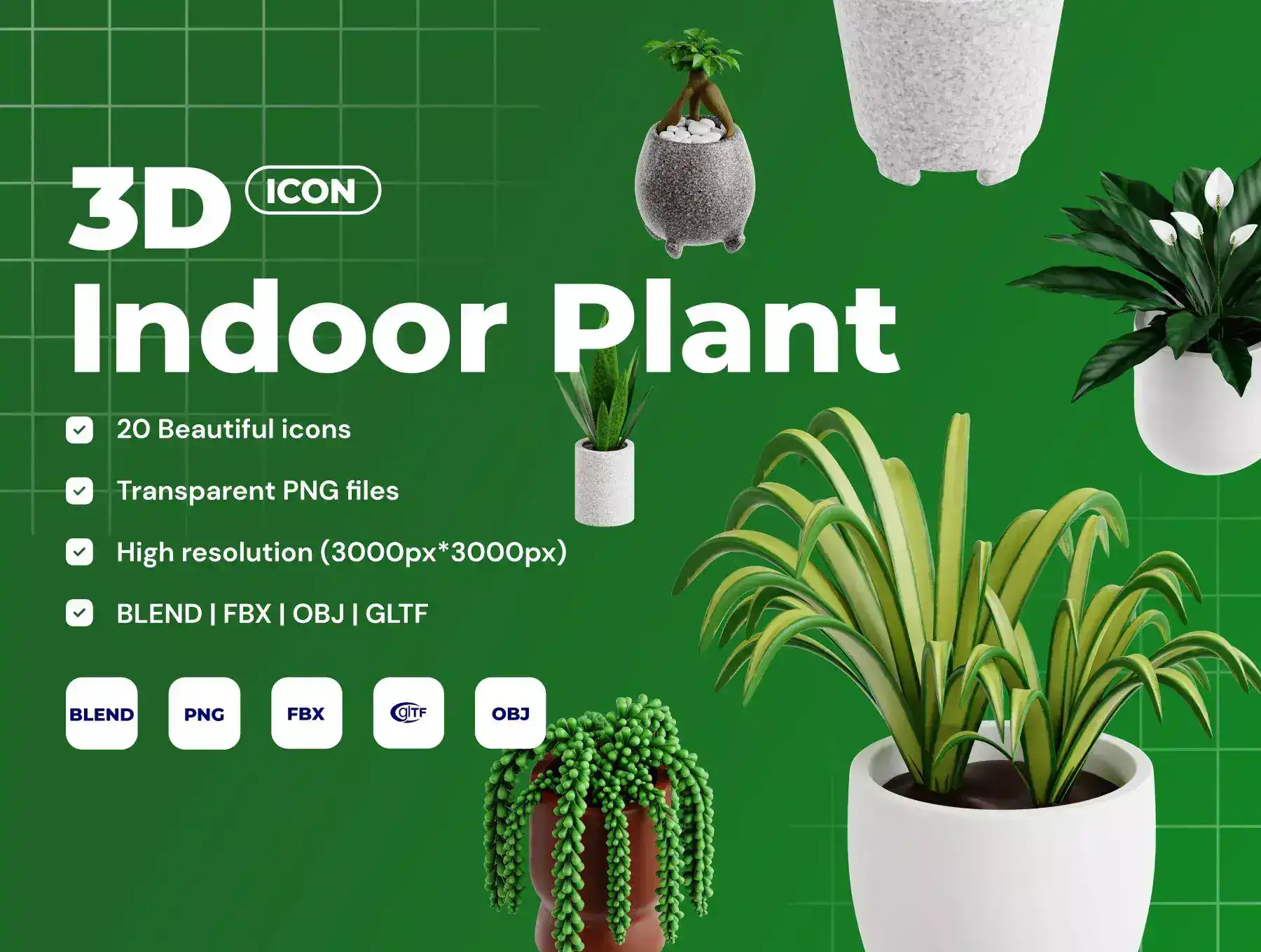 Elevate your mobile app, UI/UX, and web design projects with the Indoor Plant 3D Icon Set, adding a unique and eye-catching element to your designs.