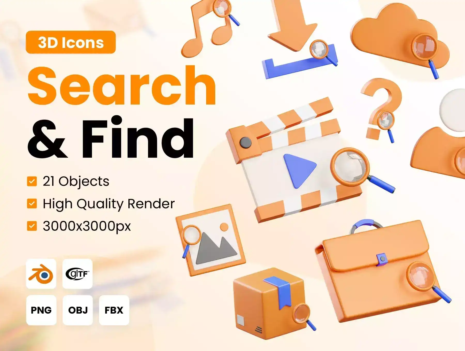 Elevate your designs with these Search & Find 3D Icons! These icons are a perfect fit for web and UI designs, presentation slides, posters, and more. They're like the finishing touch that brings your creativity to life.