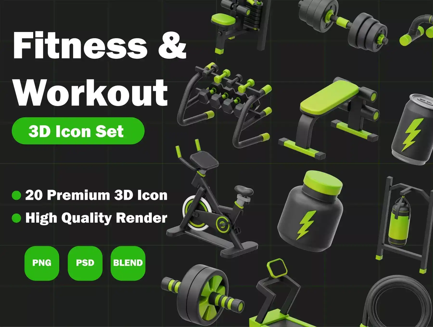 Fitness & Workout 3D Icon Set is Suitable for apps, UI, presentations, posters, social media, content creation, etc. in this pack you are able to change the material of the object.