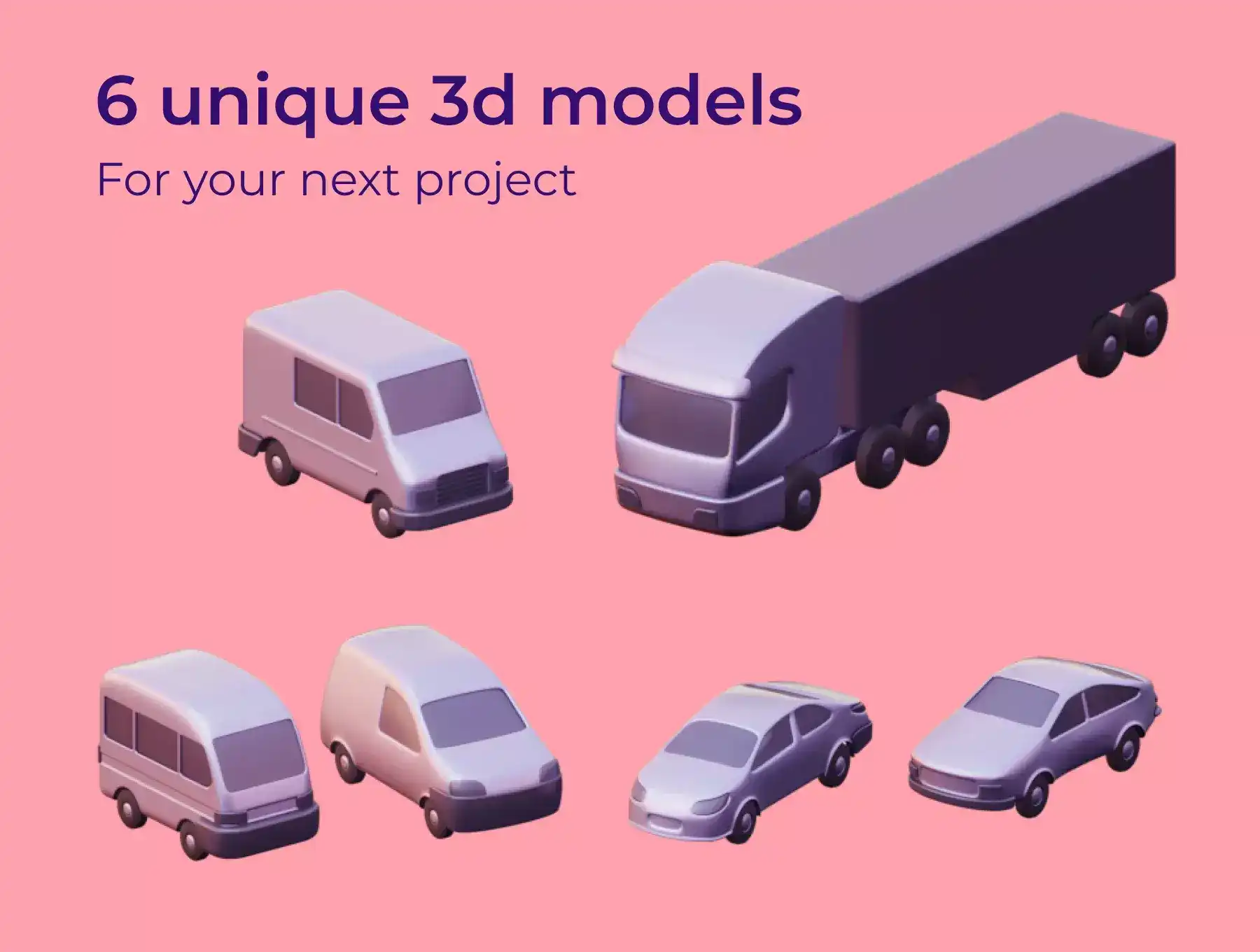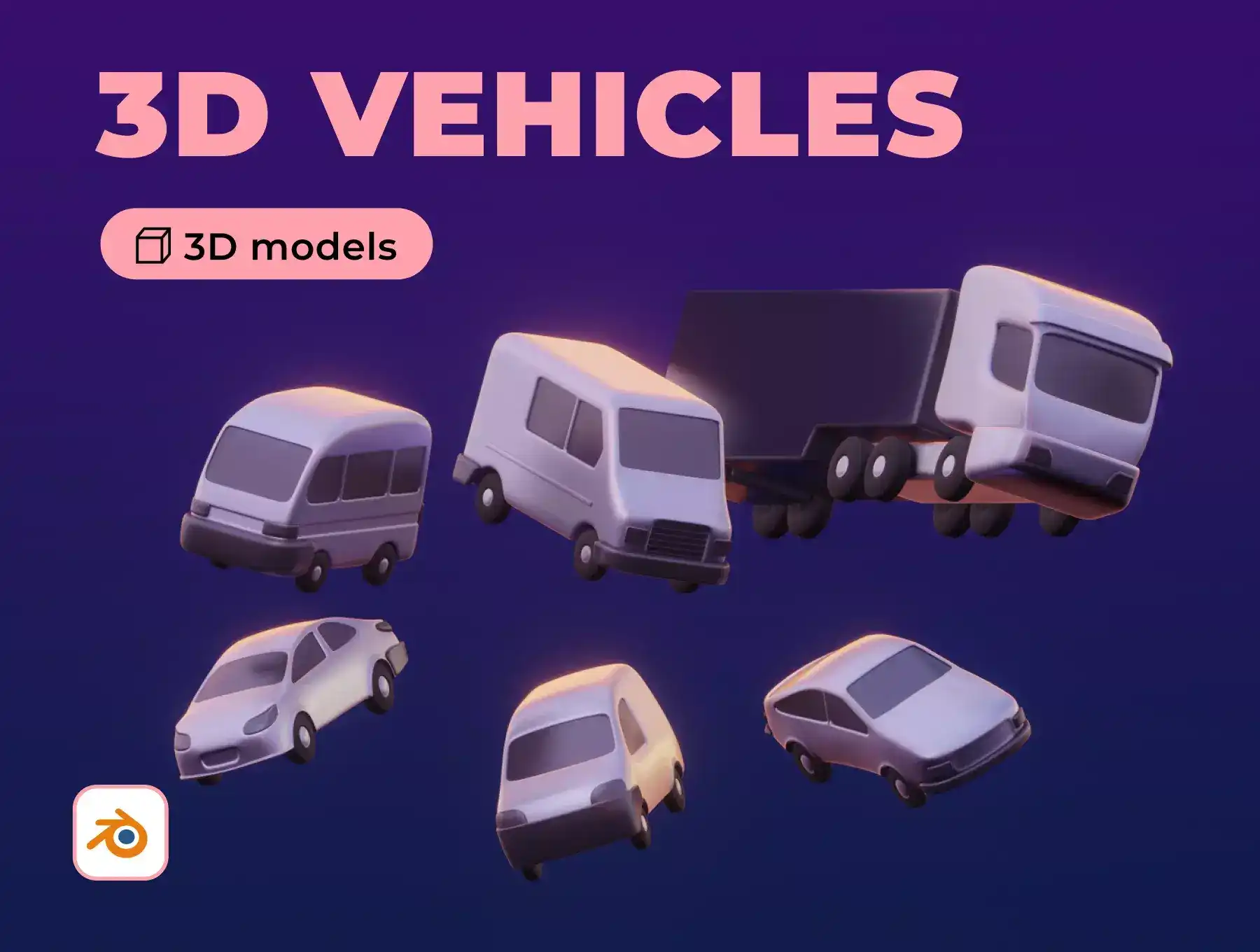 A collection of 3d cars and delivery vehicles with perfect topology and attention to detail. Includes 2 color styles: realistic and flat
