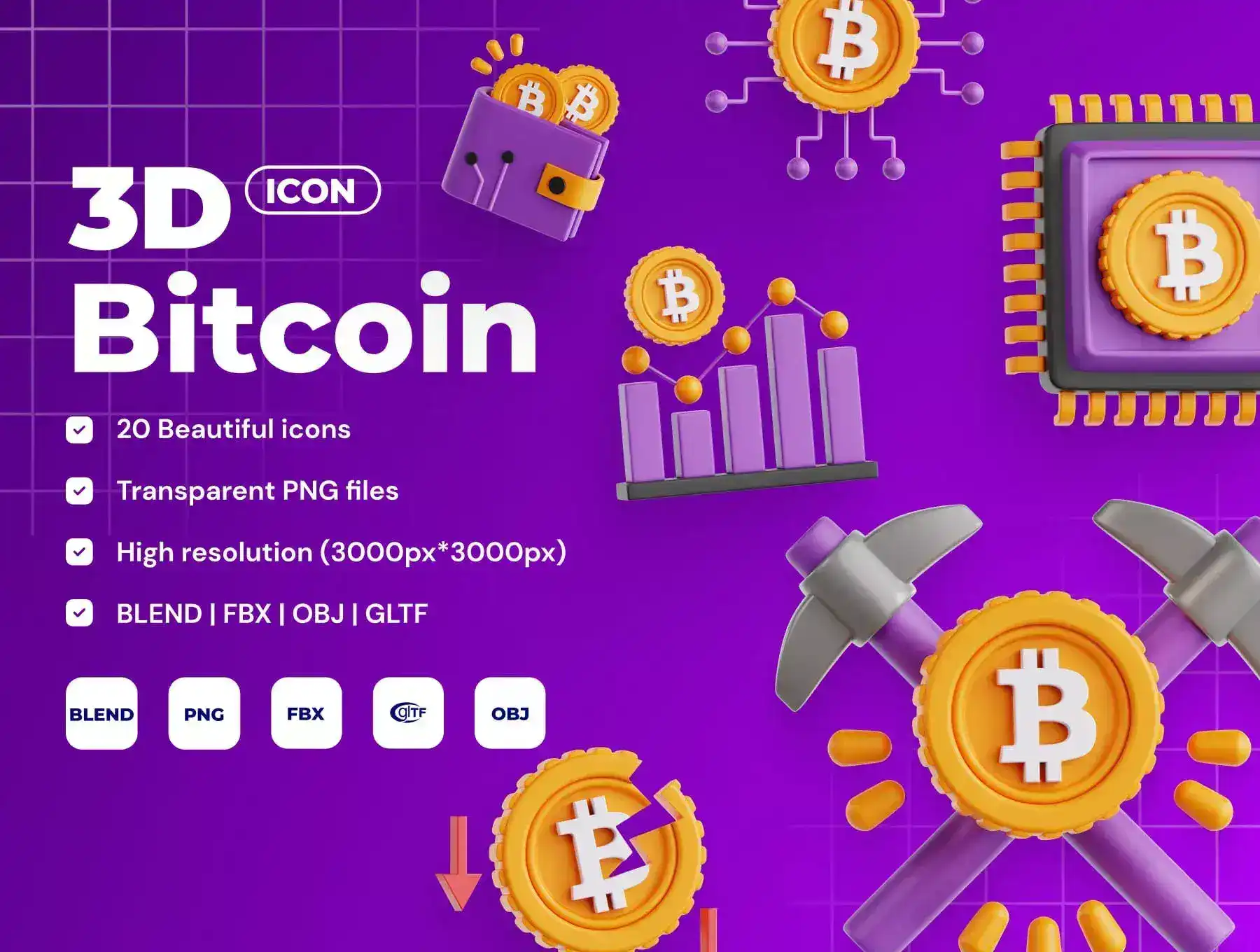 Elevate your mobile app, UI/UX, and web design projects with the Bitcoin 3D Icon Set, adding a unique and eye-catching element to your designs.