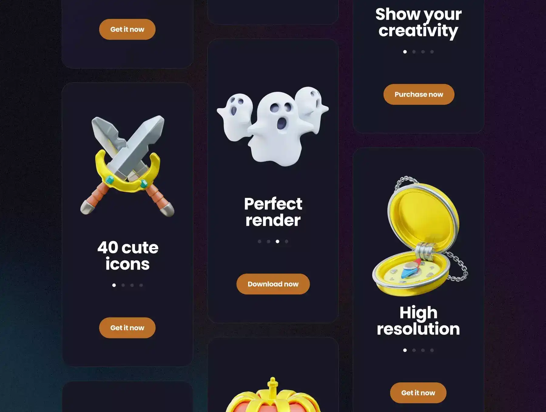 3D Game Assets can level up your game or other kind of projects! Contains 40 illustrations to make your game, landing page, and mobile apps look amazing!