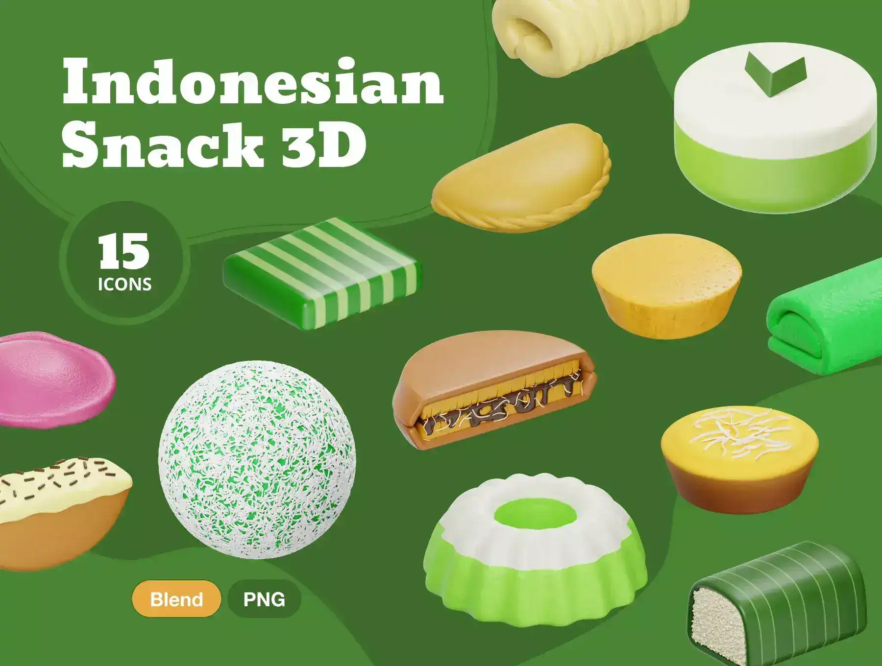 15 ready-made 3D Indonesian Snack file objects for Websites, Mobile Apps, and more. Enhance your designs with 3D Assets.