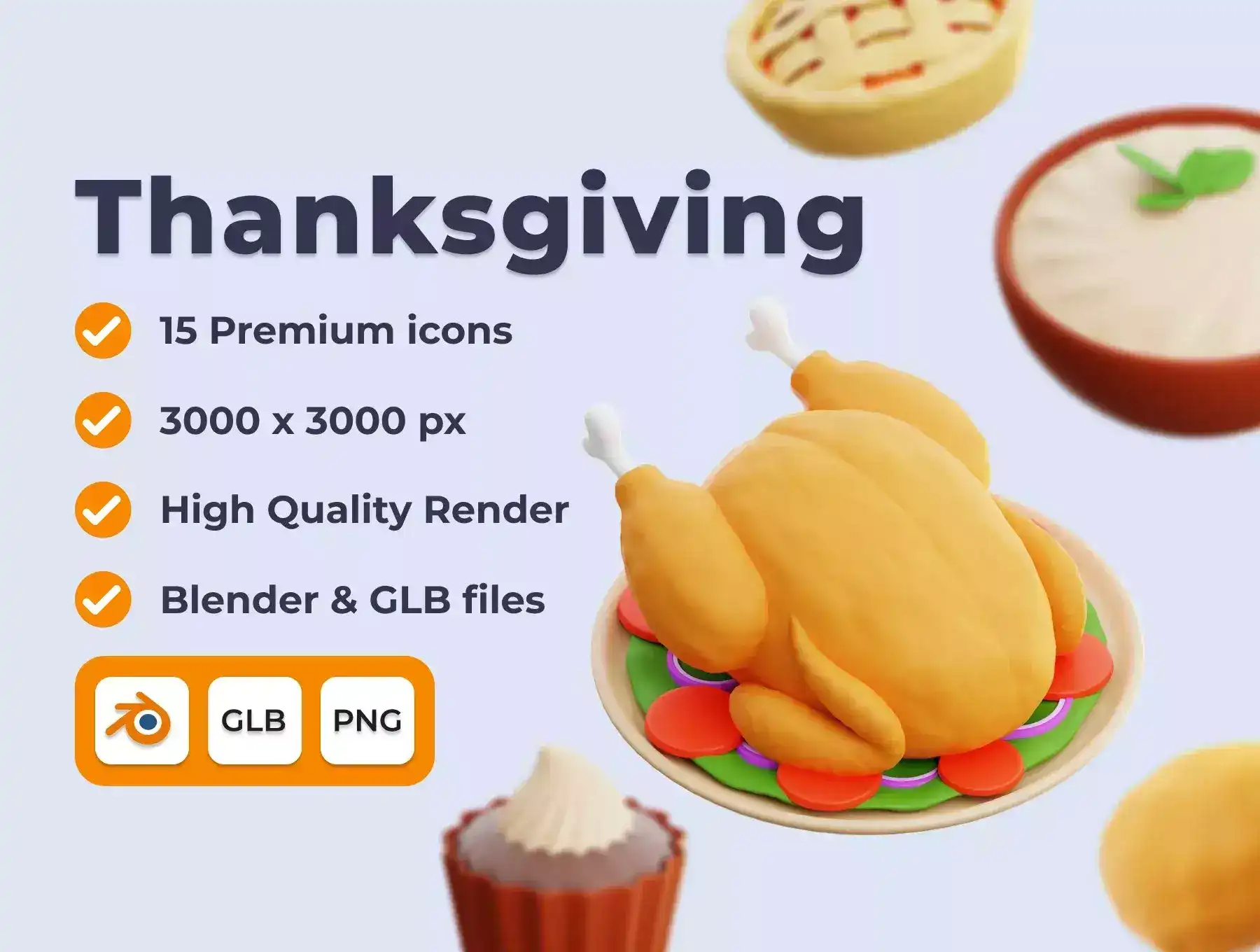 15 ready-made Thanksgiving 3D Illustration file objects, Suitable for website, app, presentation and other projects you create. Adaptable with your brand guideline, because you can change the colour easily