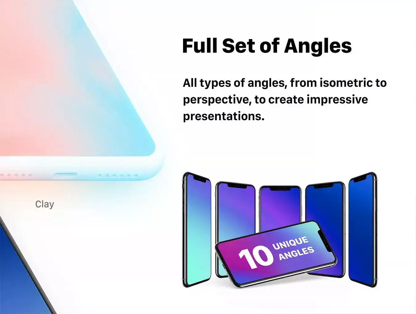 Very detailed iPhone X mockups pack provides 10 most popular angles in three variations each: Photorealistic, Clay and Dark Clay. Convenient file organization with smart objects — insert your screenshots easily. Multiple shadow variations and reflection option — build up your custom scenes. Crafted by designers for designers. Magic Mirror plugin is required for Sketch use.