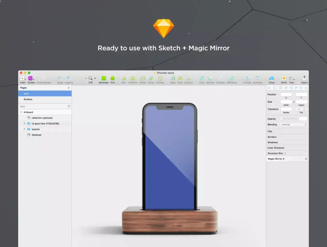 Mockups 365 Day 24 is a stunning photorealistic mockup design of the iPhone X on a beautiful wood docking device. Smart object drag & drop features make this product easy to use. Day 24 is compatible with Sketch & Photoshop. Requires Sketch Mirror Plugin.