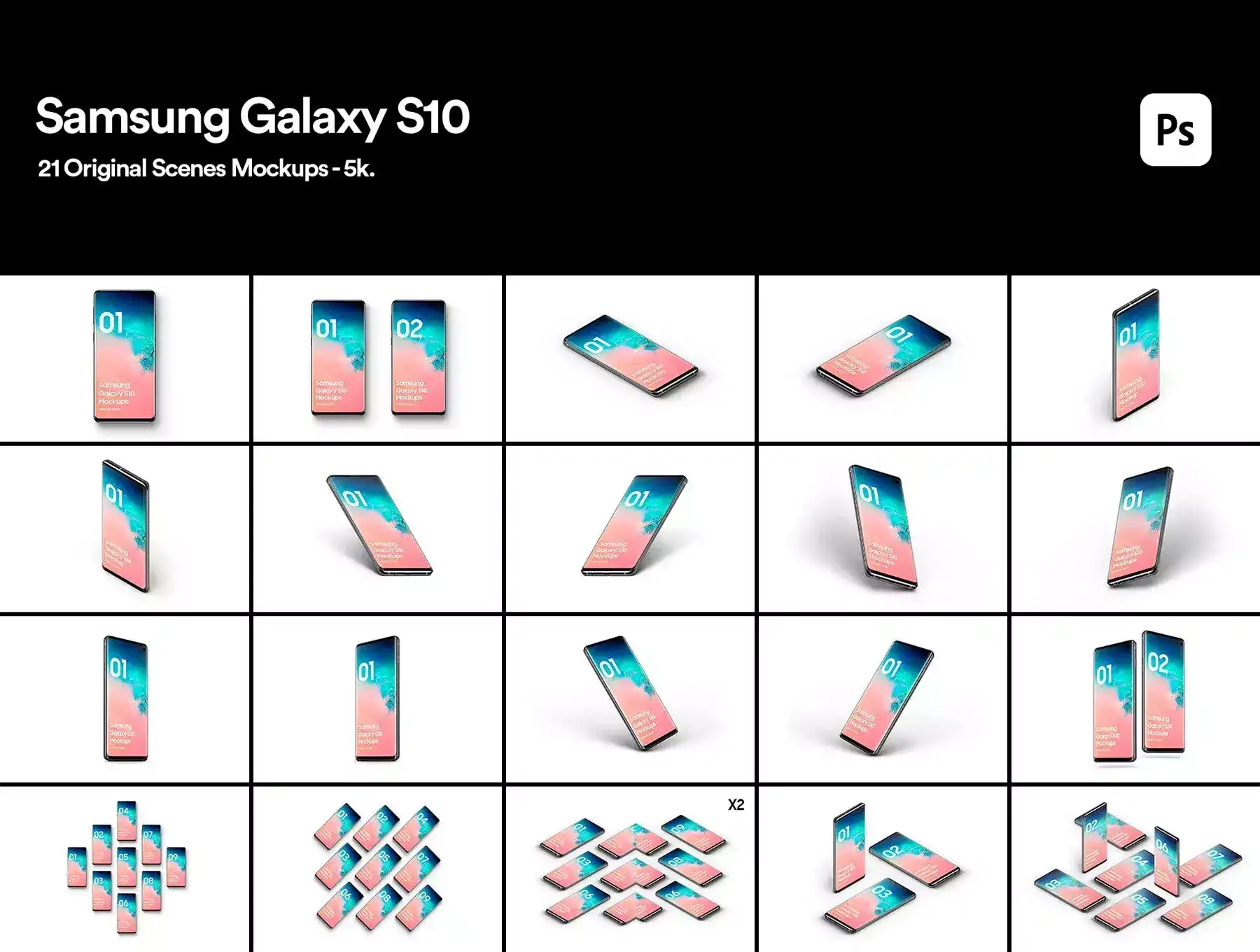 - Includes 21 Samsung Galaxy S10 Scenes PSD high quality files (All the scenes that you will see they already included in the purchase).