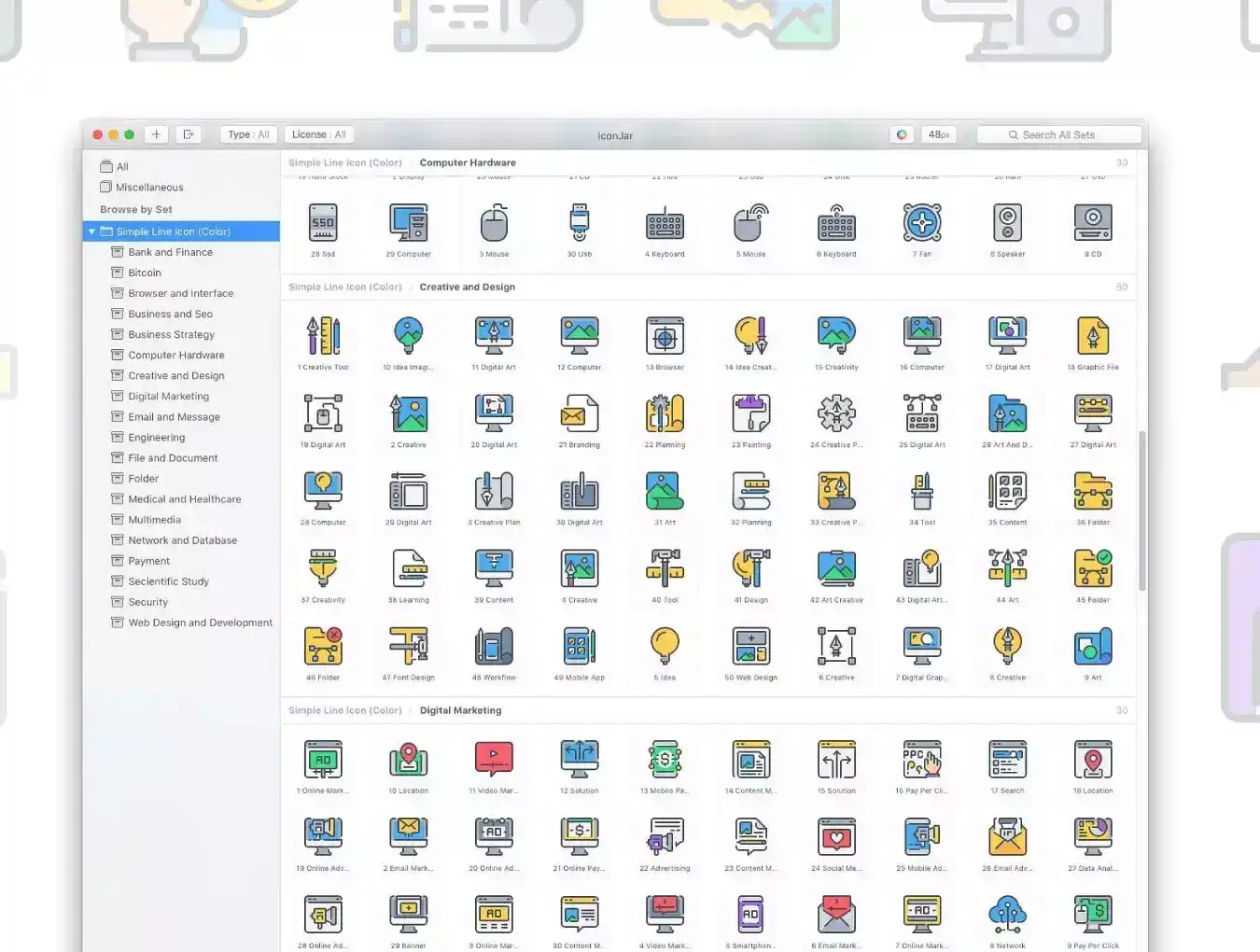 Justicon Presents 750 Simple Line Icon x2. These are Outline line icons Collection that designed on detail Round line style. All icon look Clean and Simple. It also features Pixel perfect Grid for your convenience! All vector icons based on 48px grid. This pack offers you icons in various file formats; from AI, EPS, SVG, PNG and Iconjar. You can try 50 free icons from this collection before purchase at: (https://gum.co/tDINd).