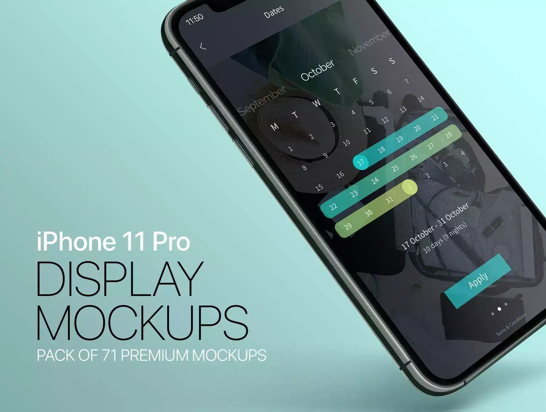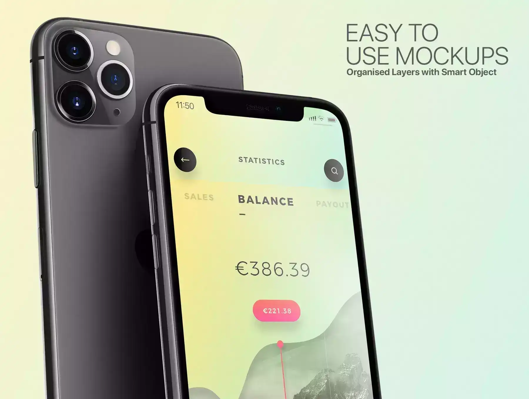 Showcase your Apps design like a pro with realistic premium iPhone 11 Pro Display Mockups Set.