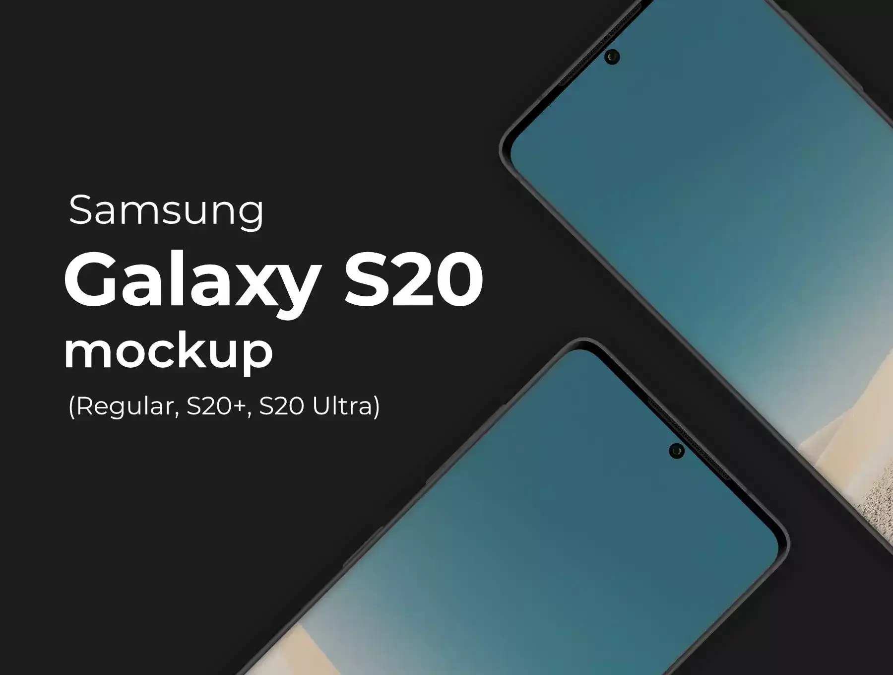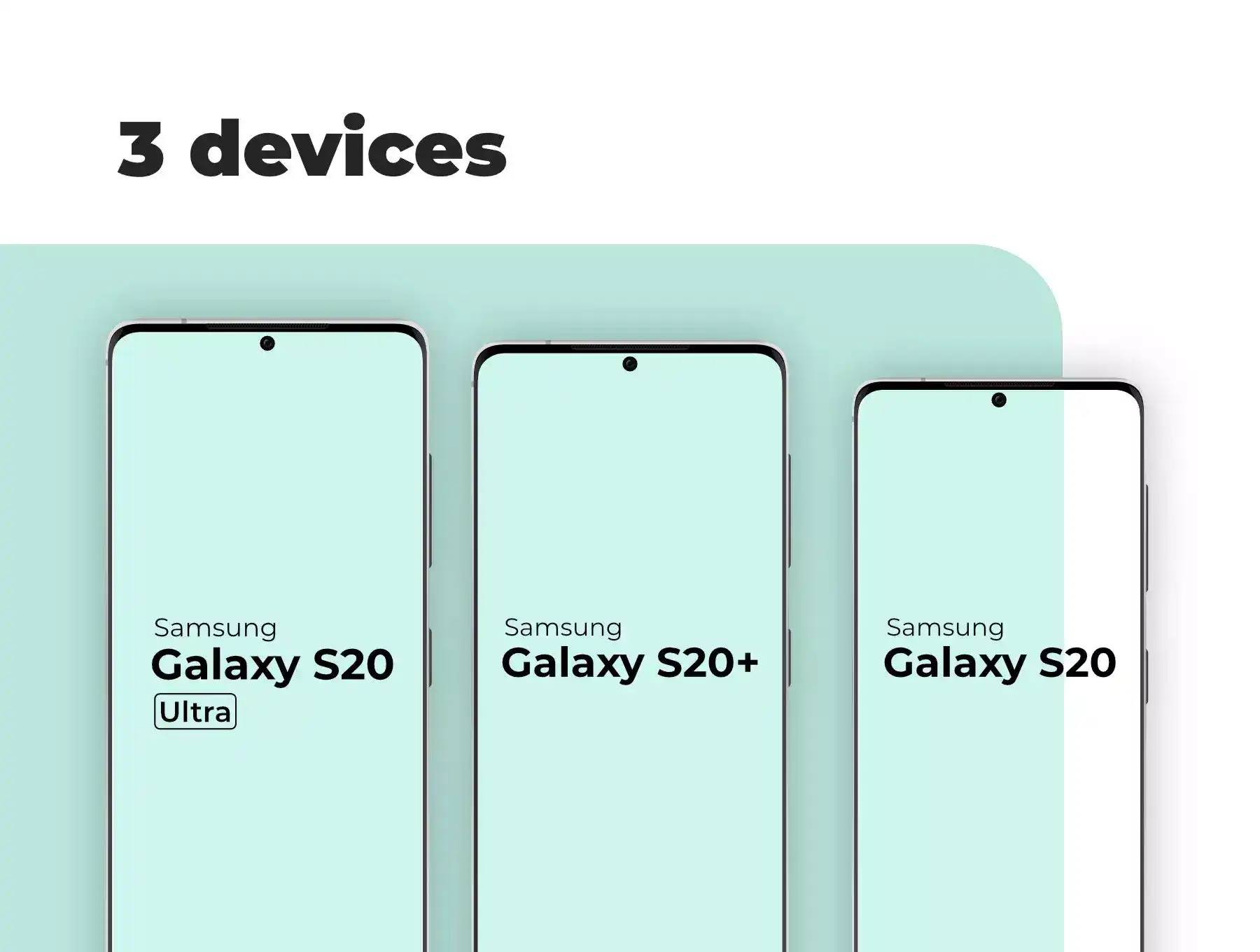2 style, minimalist mockup for Samsung Galaxy S20, S20+ and S20 Ultra.