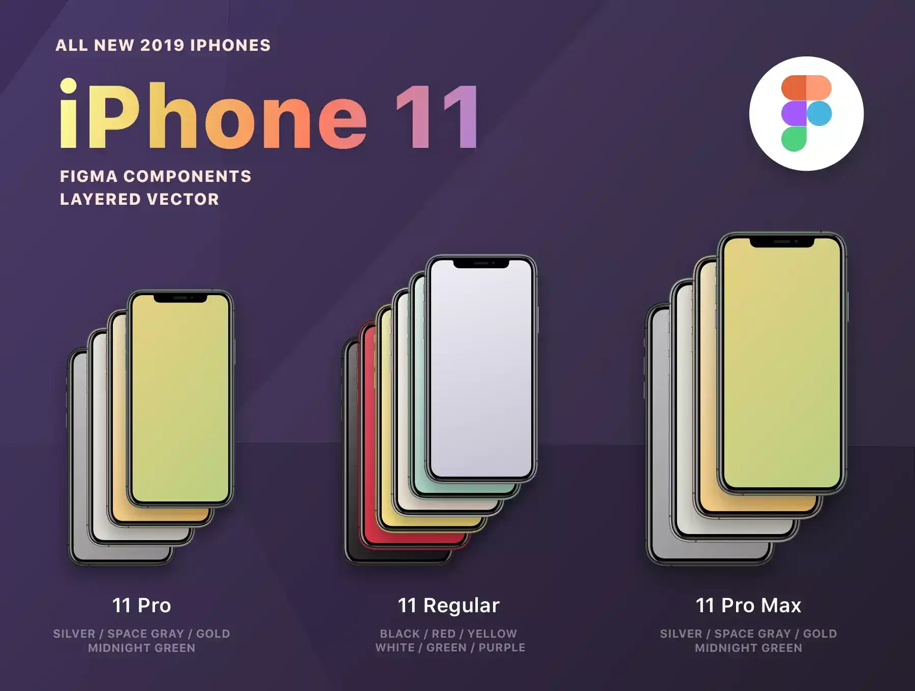 Figma newest iPhones mockups: iPhone 11, iPhone 11 Pro, iPhone 11 Pro Max