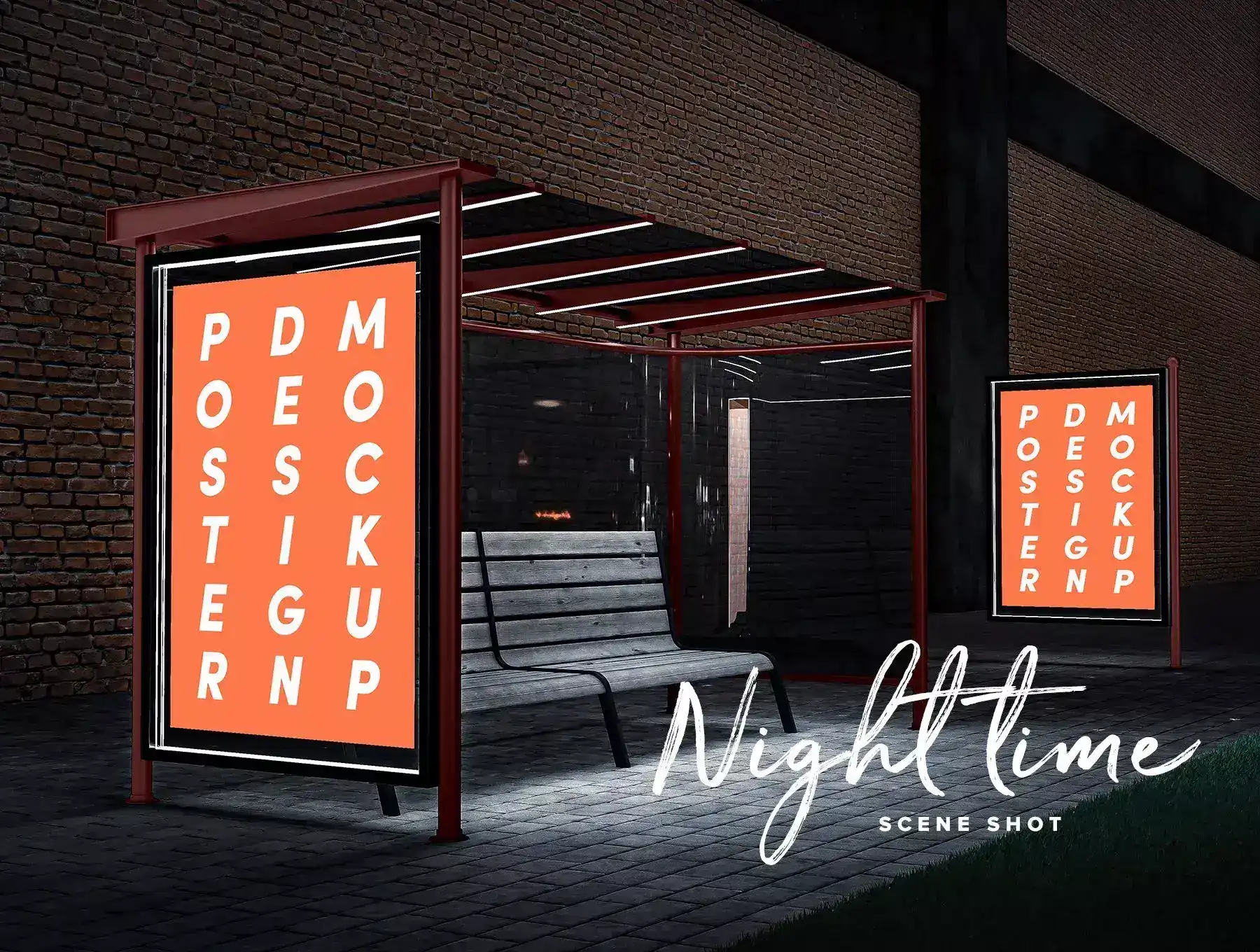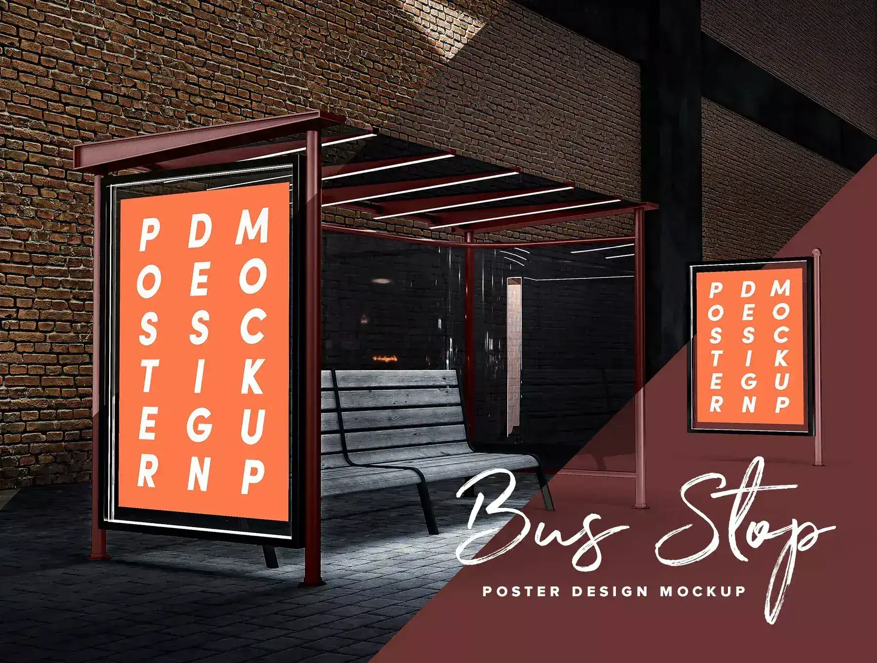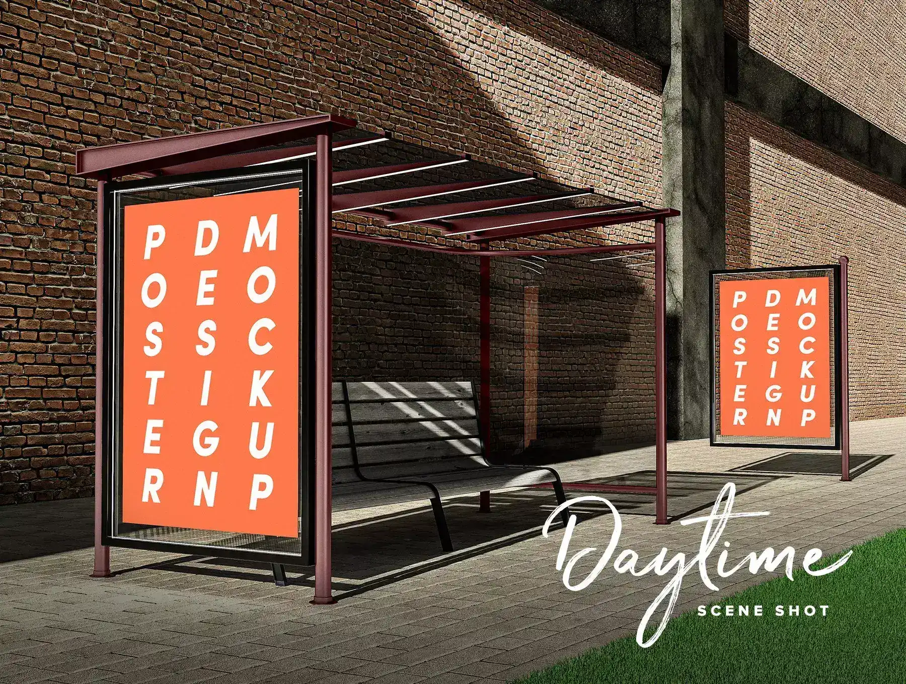 Outdoor branding mockup featuring a modern day-looking bus stop.